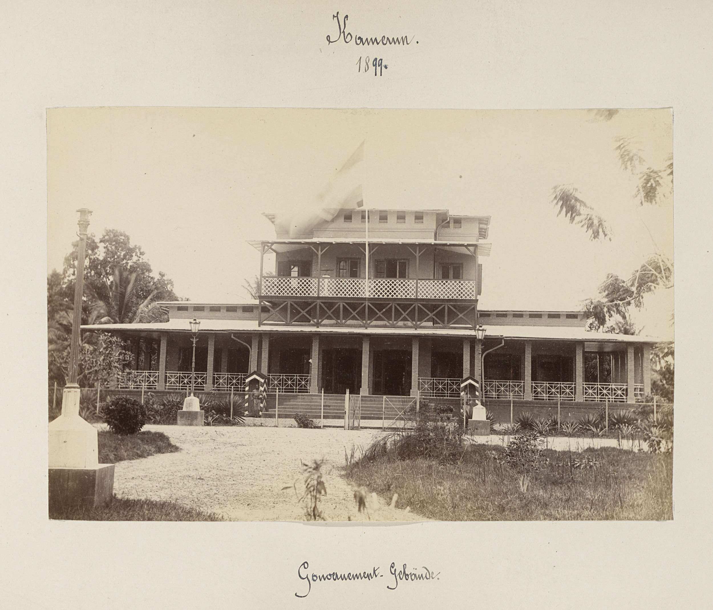 Exterieur van een gouvernementsgebouw in Kameroen, v...