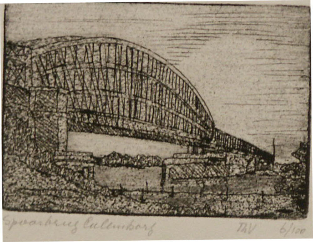 Ets, voorstellende de oude spoorbrug bij Culemborg, ...