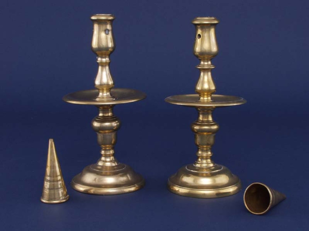 Kandelaars met bijbehorende dovers van messing.
