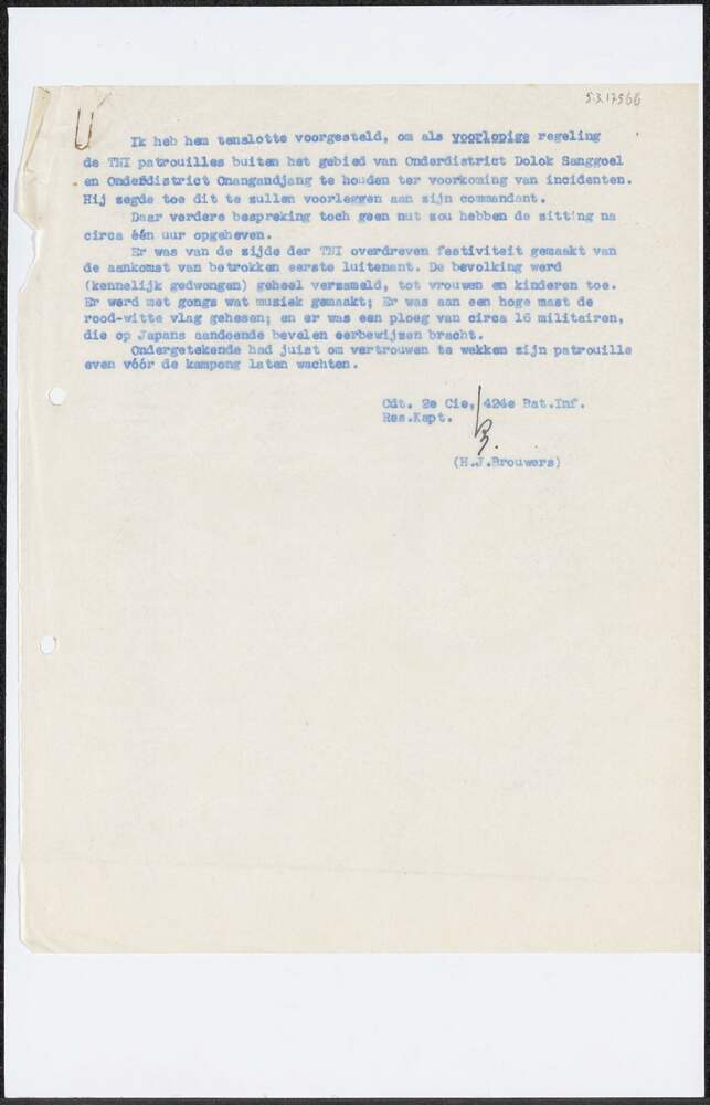 Verslag van dhr. van Kouwen m.b.t. de landing van ee...