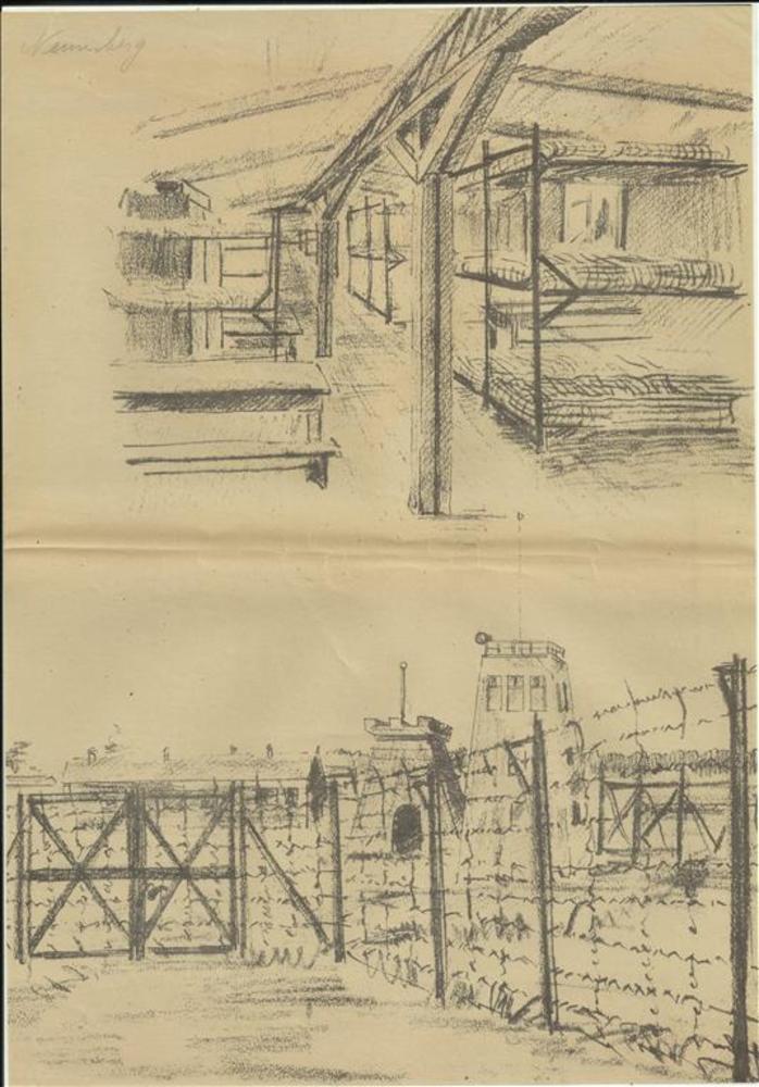 drie barakken in Stalag IVb te Mühlberg aan de Elbe