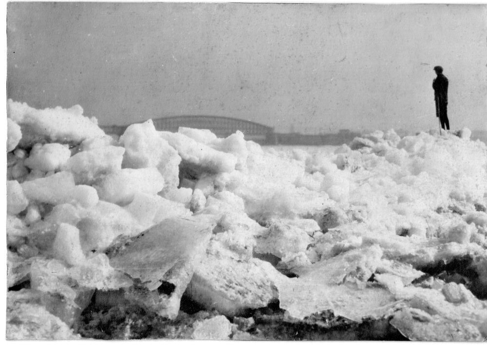 Foto, voorstellende de Lek met kruiend ijs, Culembor...