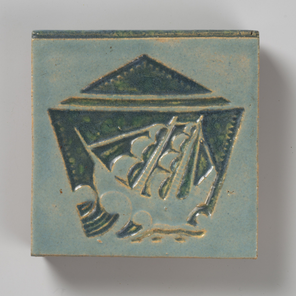 tegel van aardewerk in reliëf, voorstellende: zeilsc...