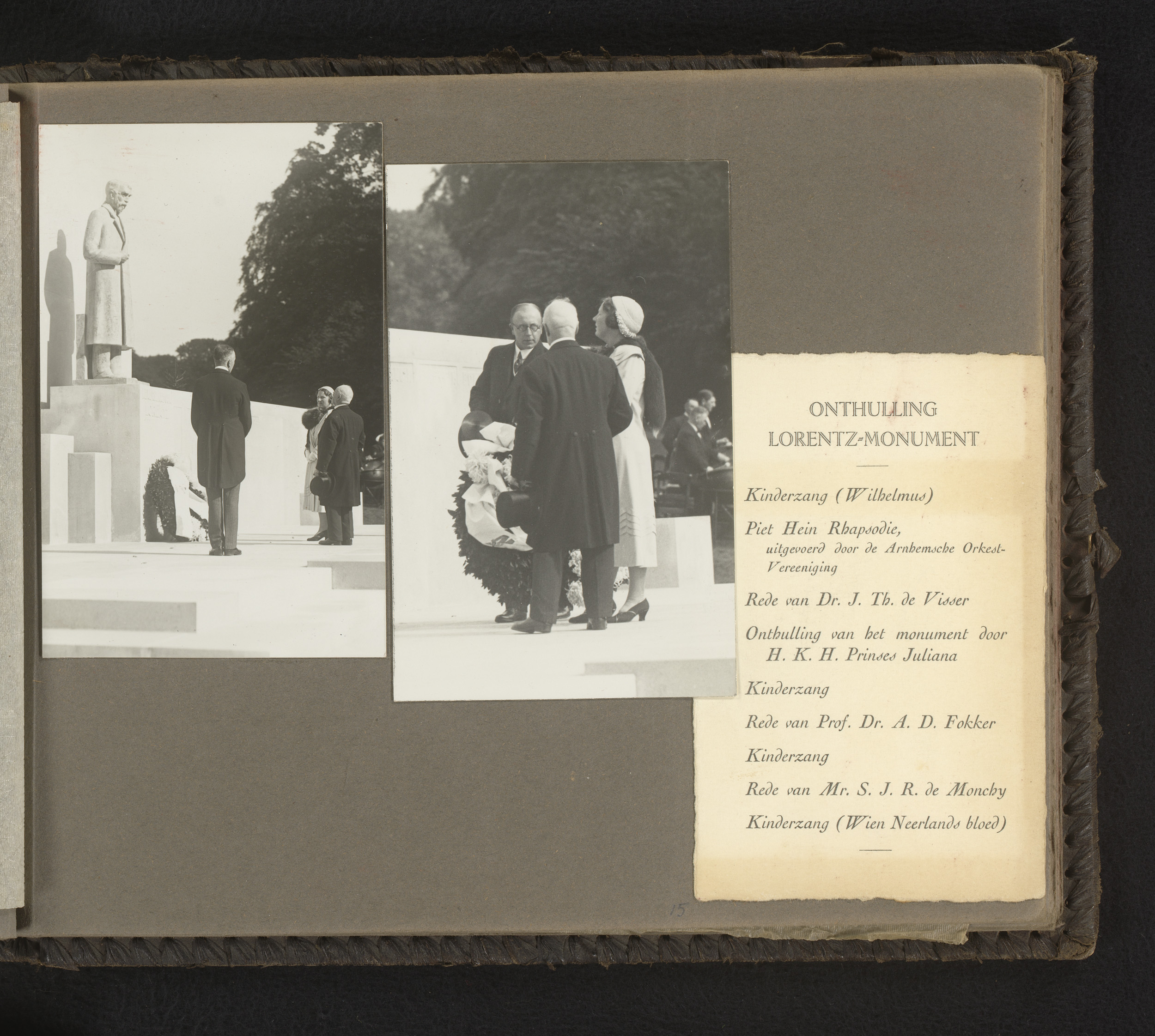 Twee foto's van prinses Juliana bij de onthulling va...