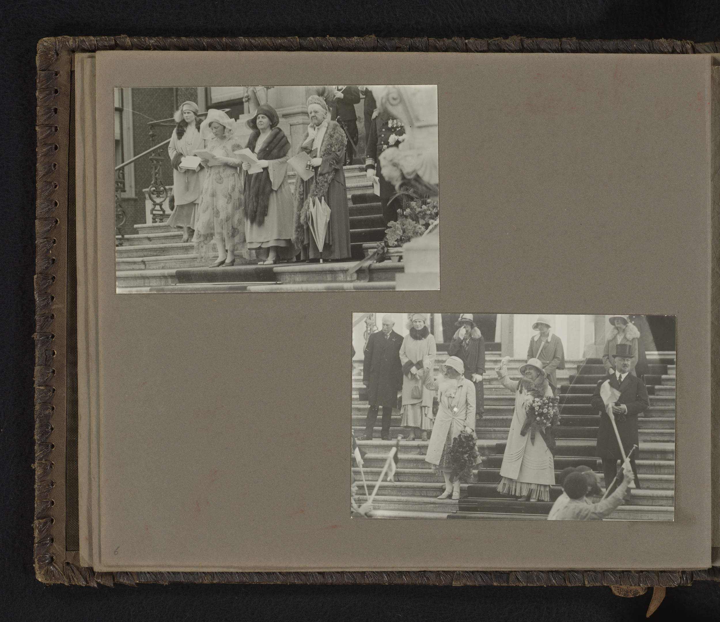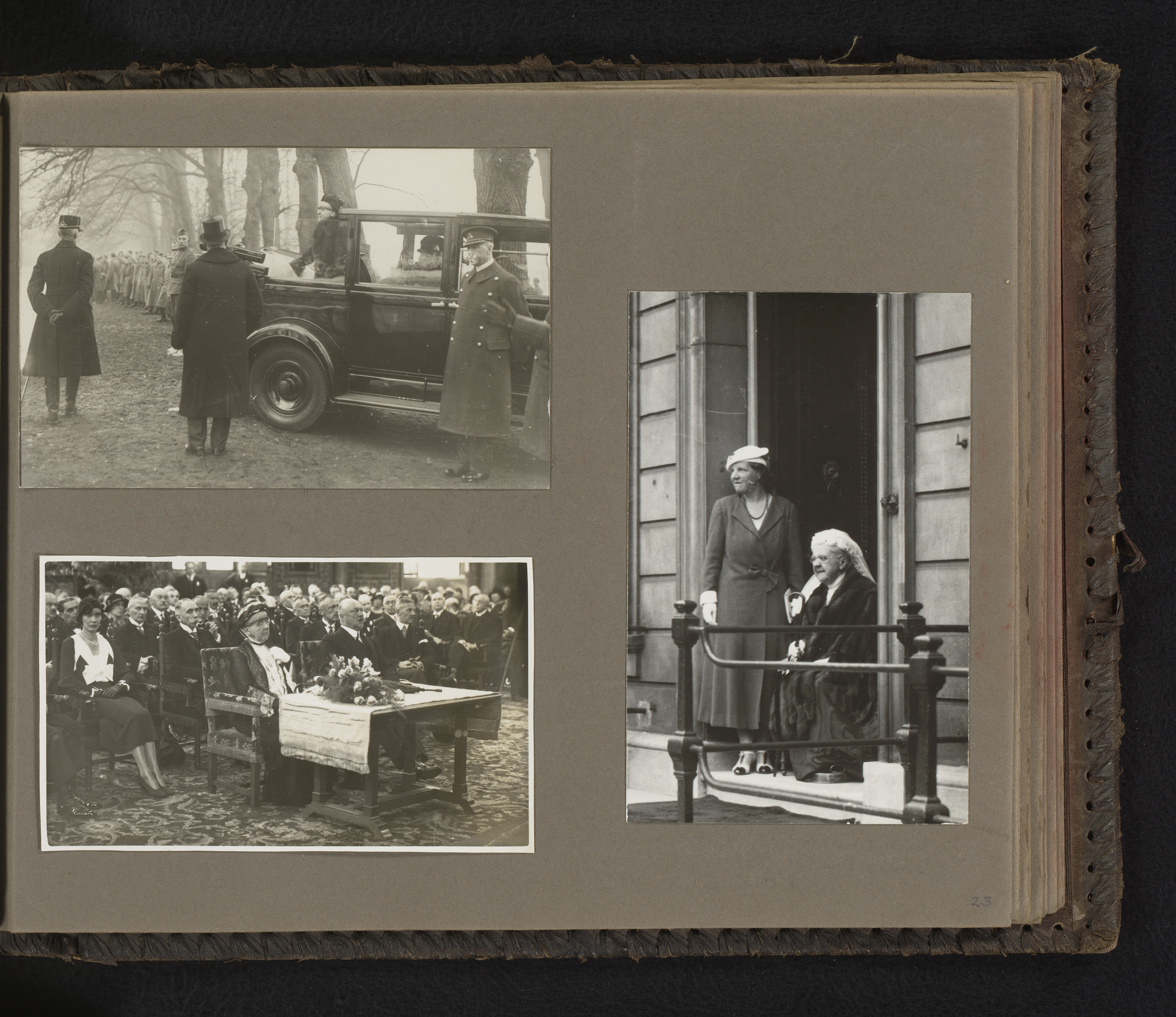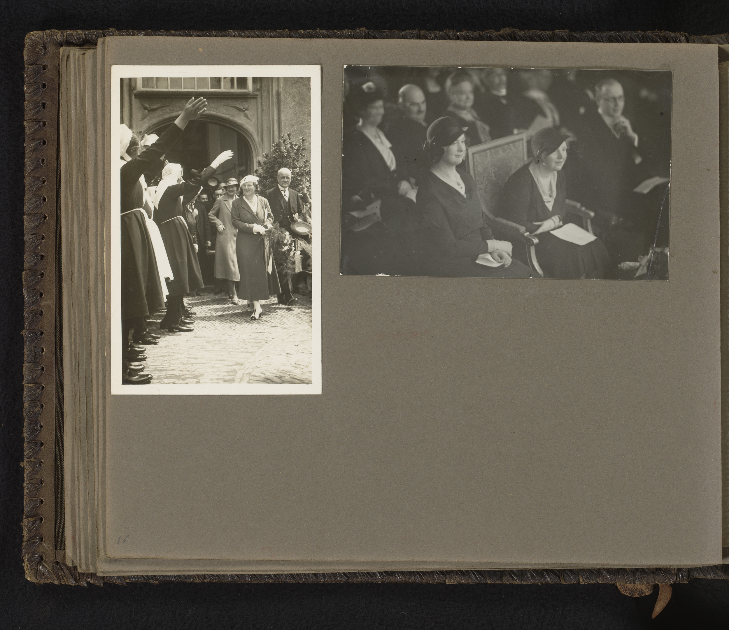 Twee foto's van prinses Juliana bij officiële aangel...