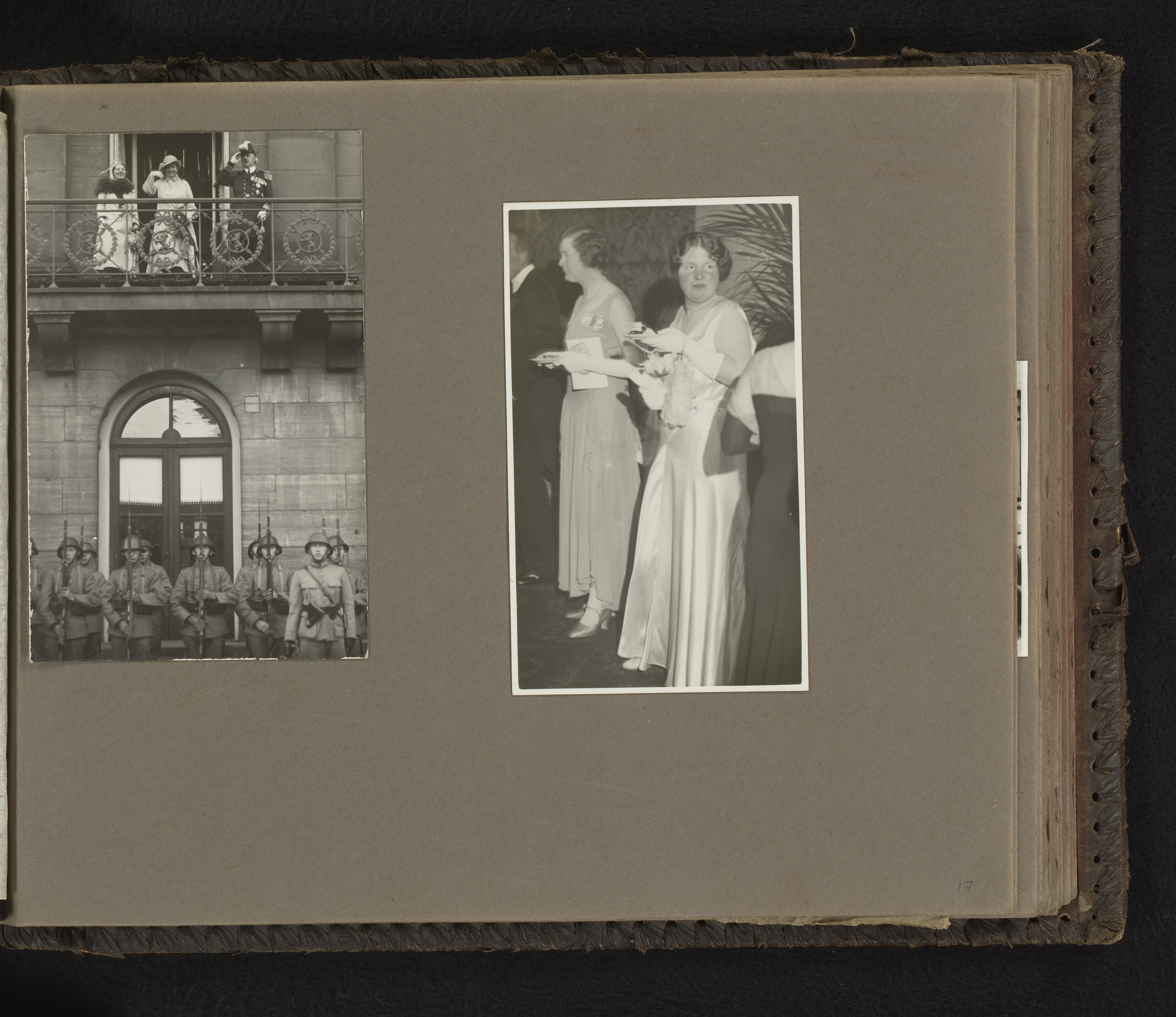 Twee foto's van prinses Juliana, op het balkon van h...