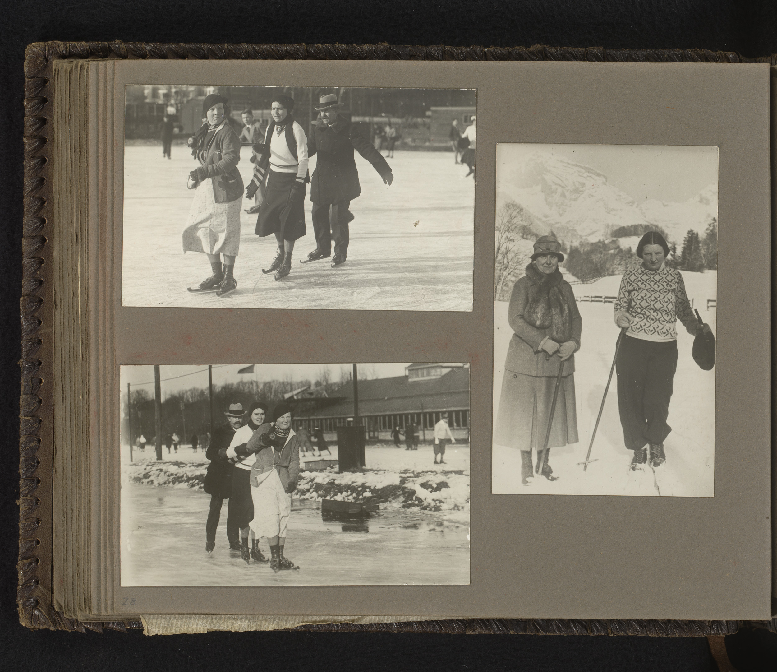 Drie foto's van prinses Juliana schaatsend en skiënd...