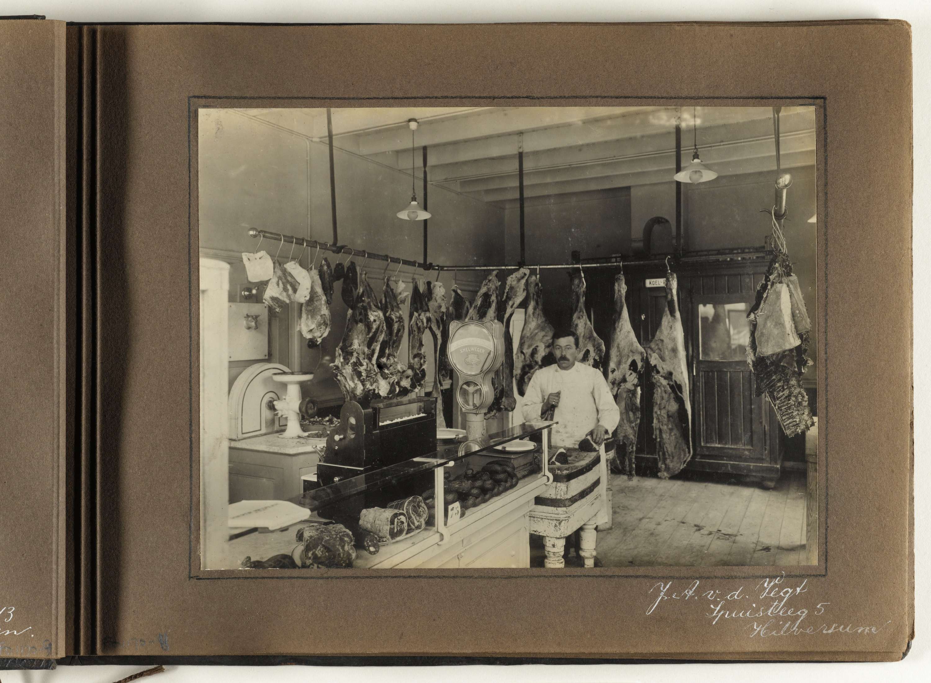 Interieur van de slagerij van J.A. v.d. Vegt, Spuist...