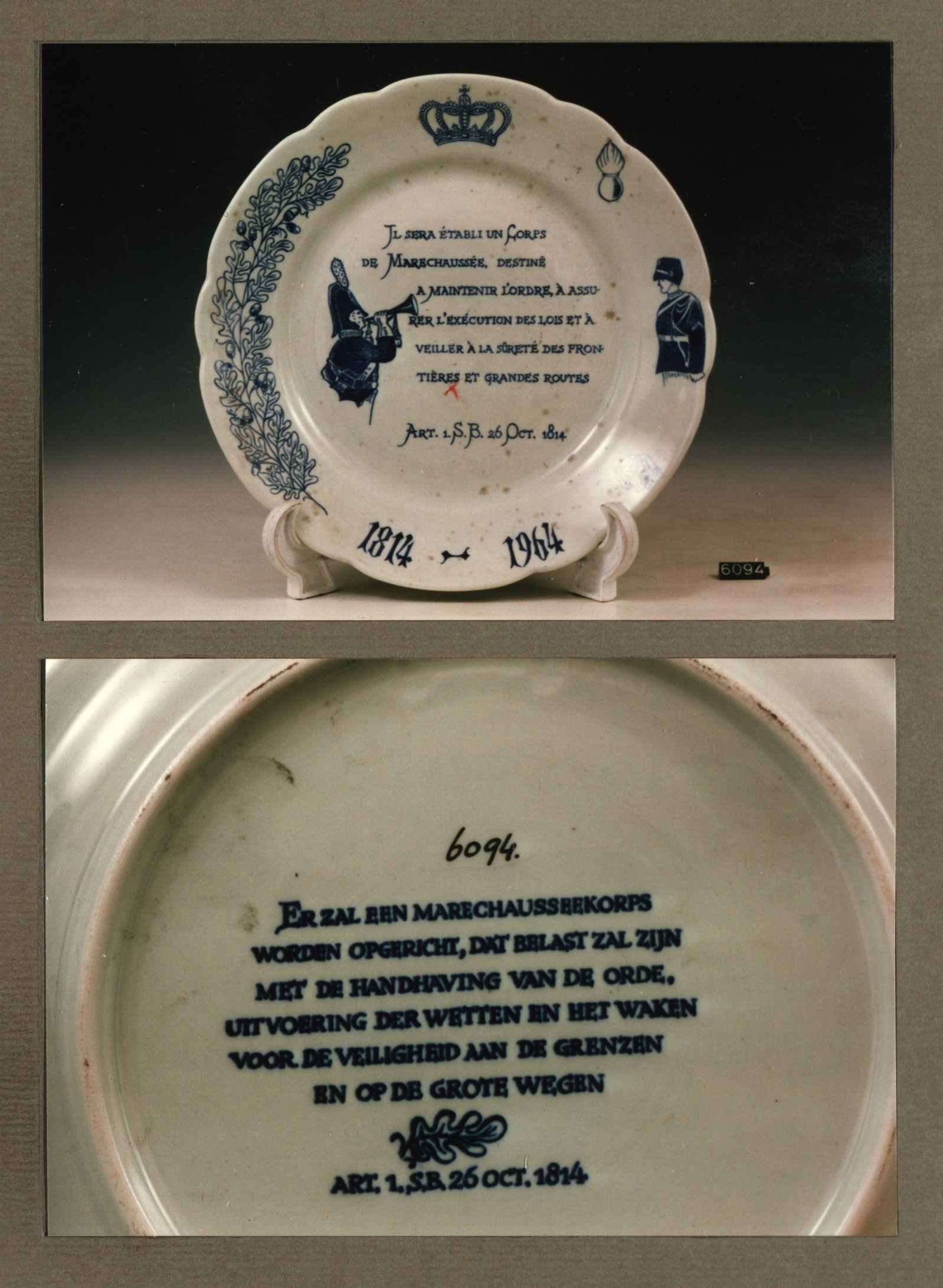 Wandbord, model Feston met decor Marechaussee