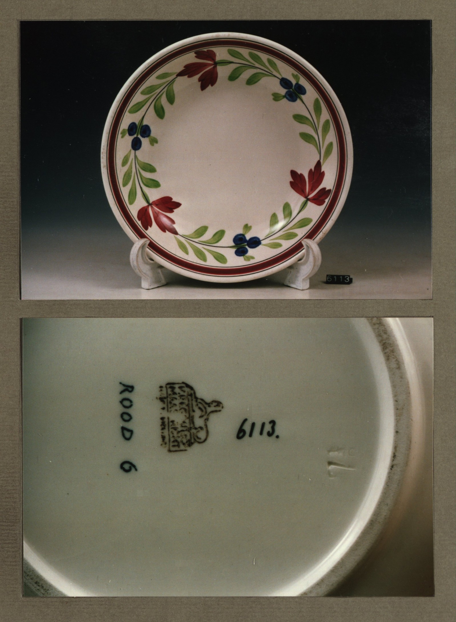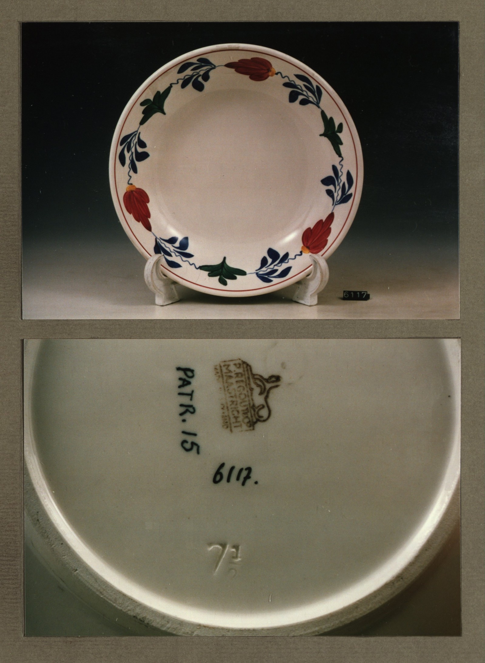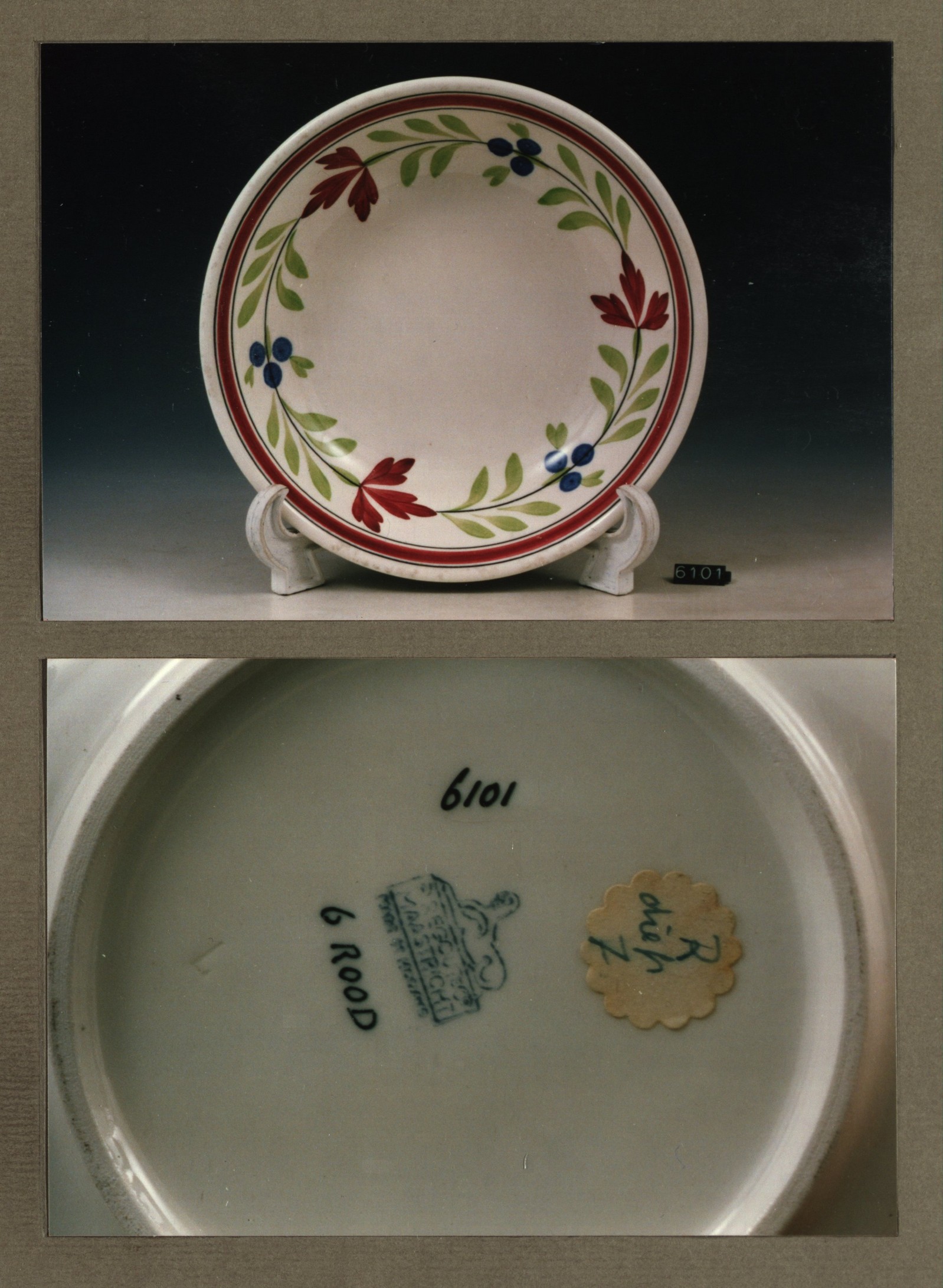Diep bord, model R met decor 6 rood