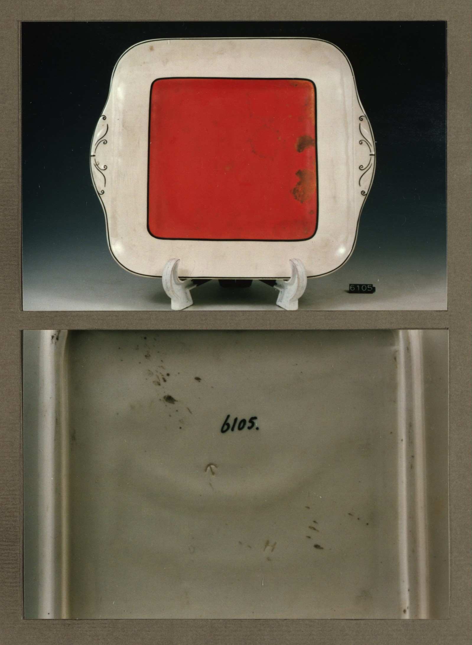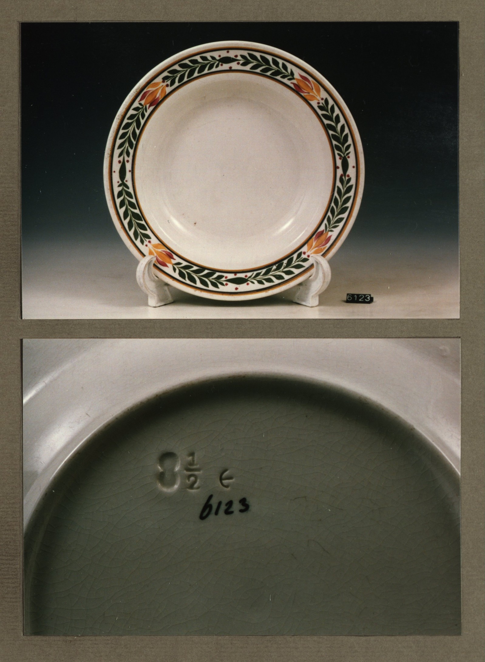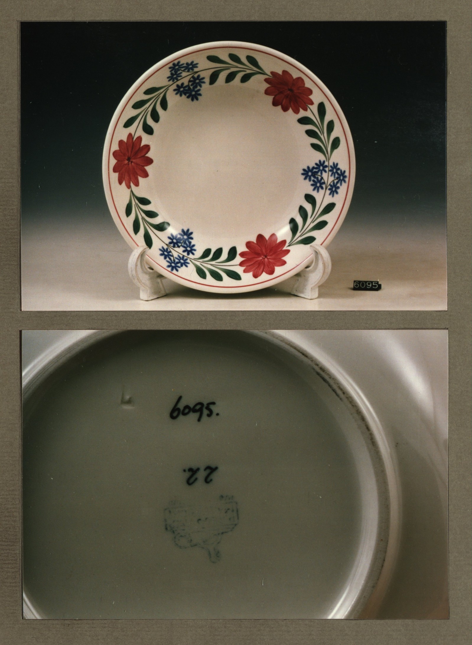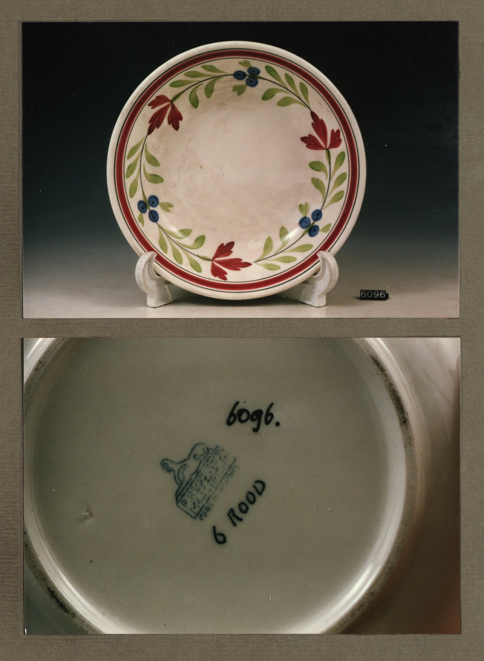 Diep bord, model R met decor 6 rood