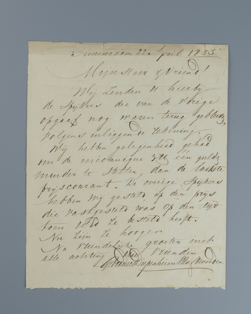 Brief, handschrift op papier betreffende navordering.