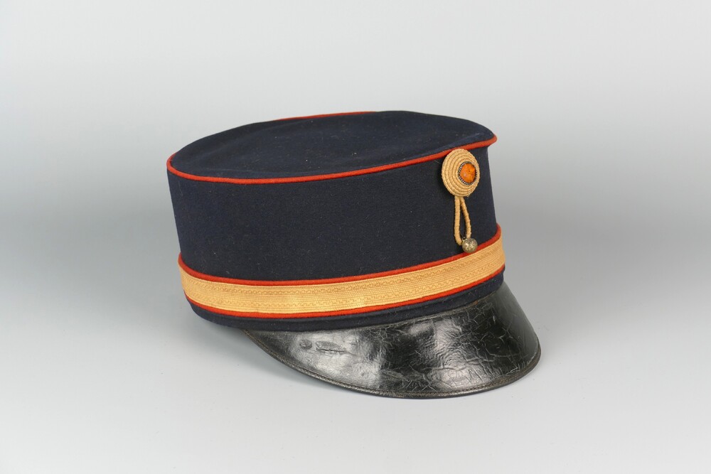 pet van stof met leer behorend tot uniform van de Cu...