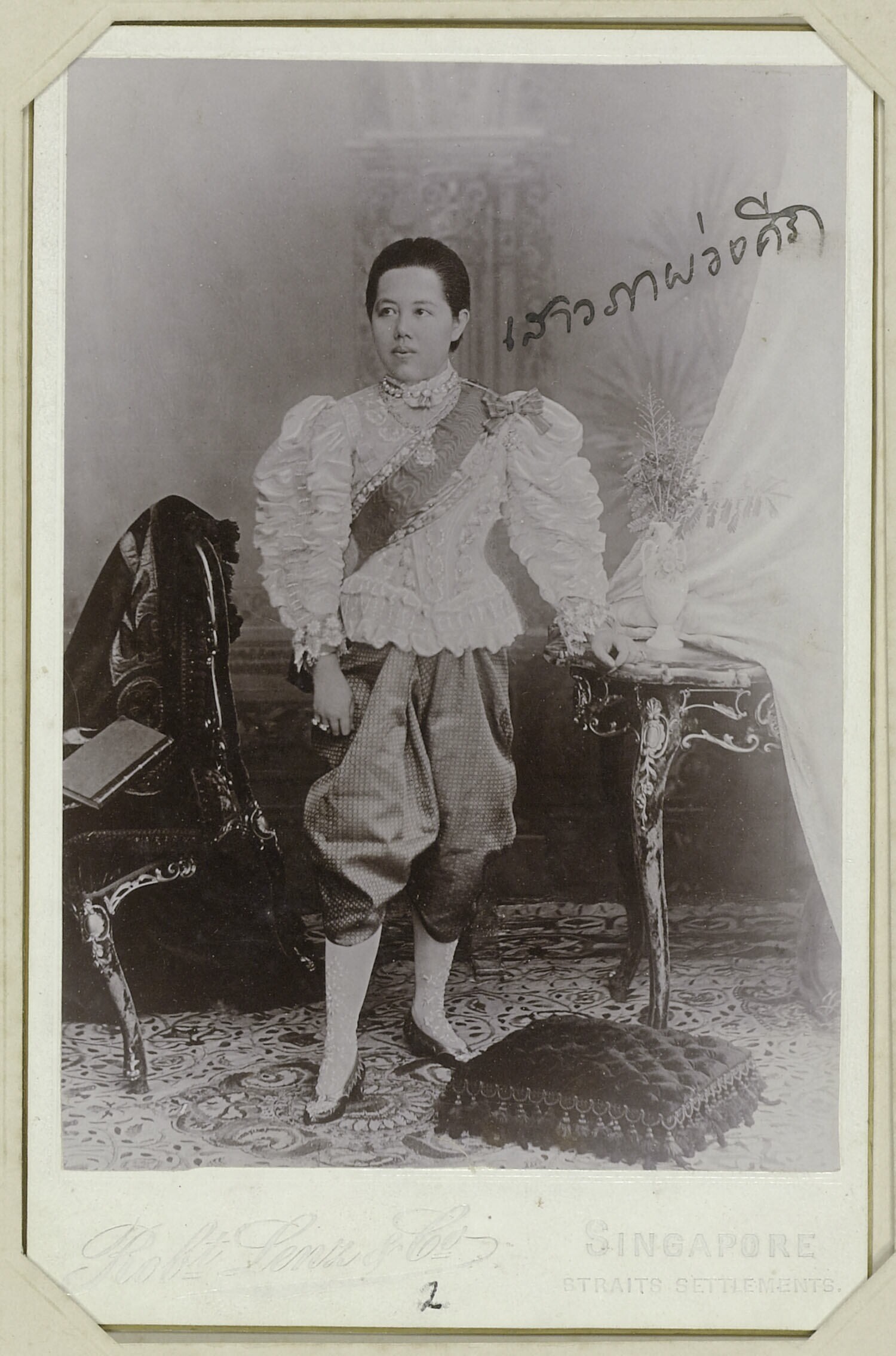 Javaan van voorname afkomst staand naast stoel