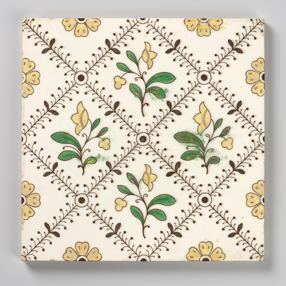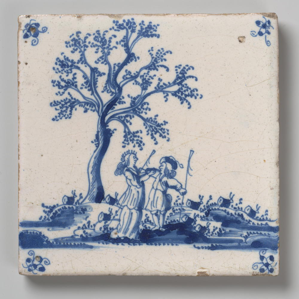tegel van aardewerk in transfertechniek, voorstellen...
