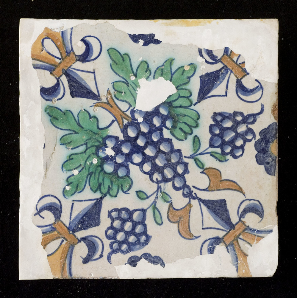 tegel van aardewerk met tinglazuur, voorstellende: o...