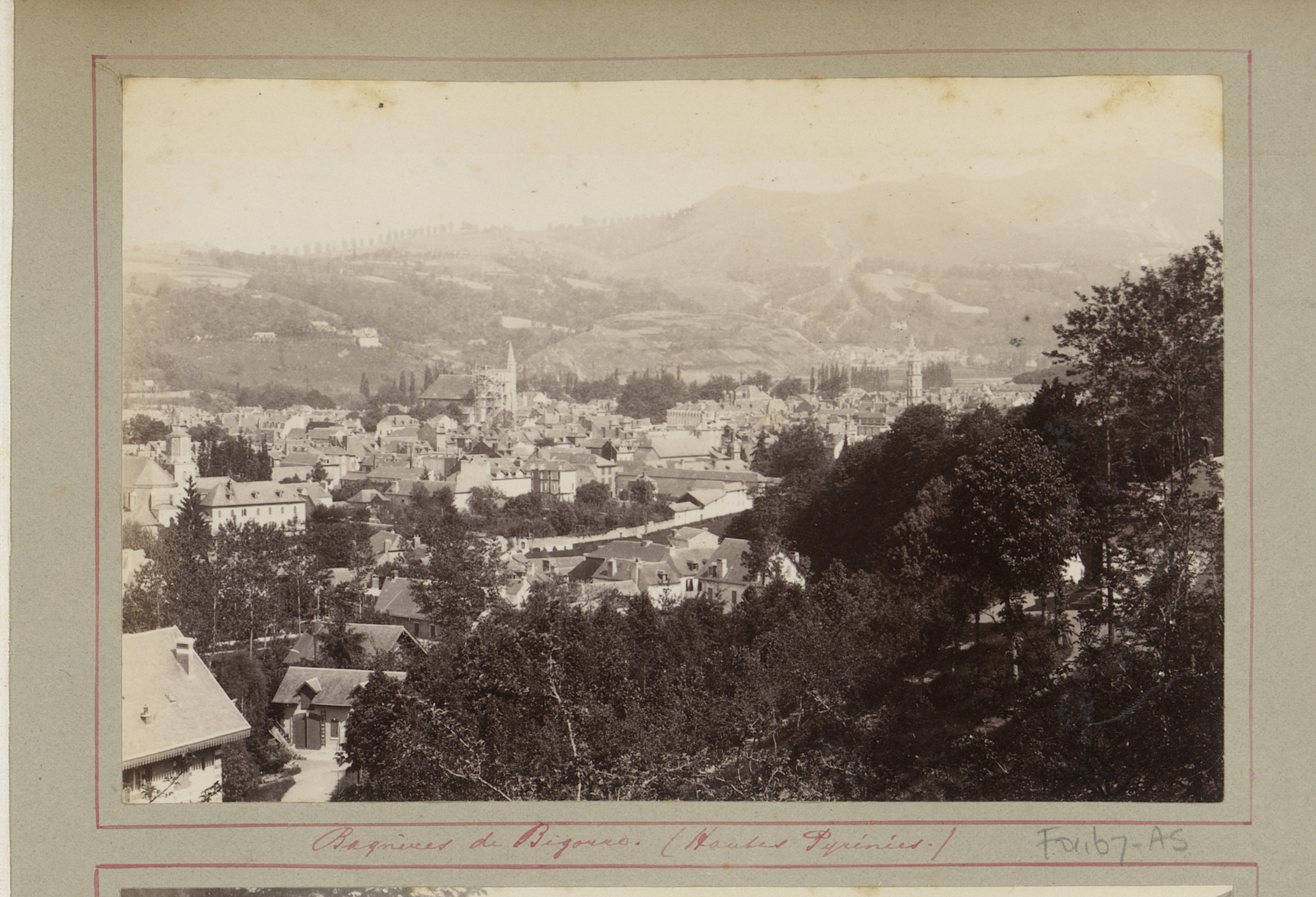 Gezicht op Lourdes met op de achtergrond de Pyreneeën