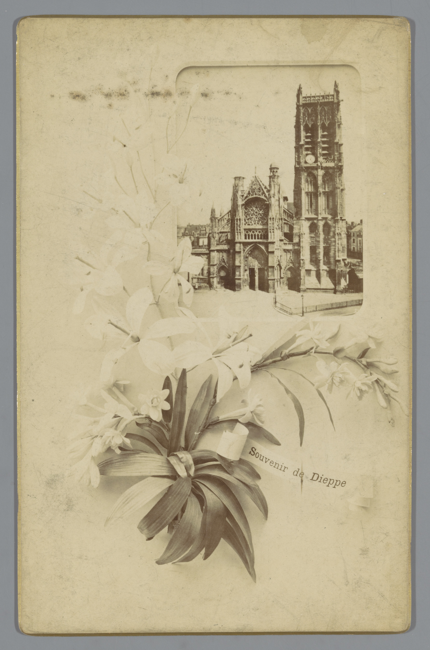 Bloemstuk geplaatst op een afdruk van de kerk Saint-...