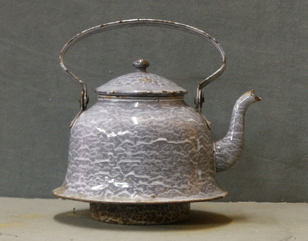 waterketel, gemaakt van grijs gewolkt geëmailleerd m...
