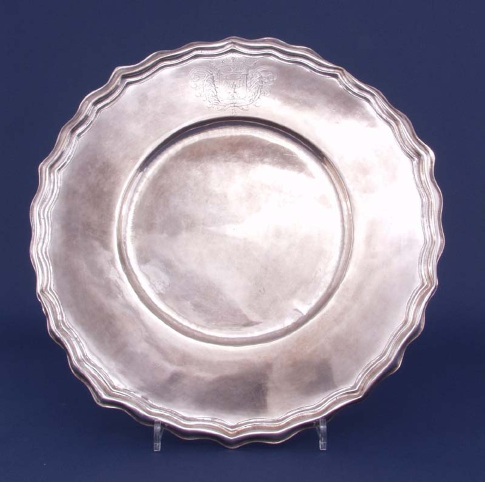 avondmaalsschotel van glad zilver met gegraveerd ker...