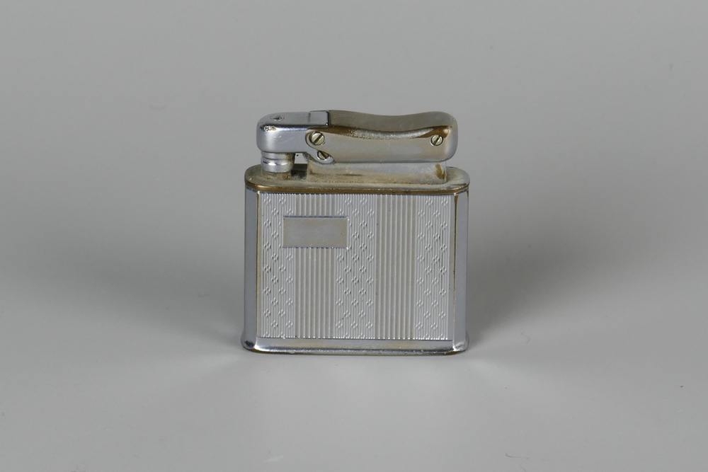 Aansteker van vernikkeld metaal met streep en ruit p...