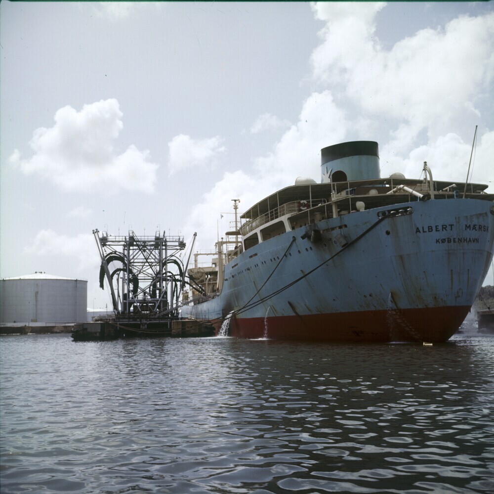 Vrachtschip bij een tankerinstallatie van het laadco...