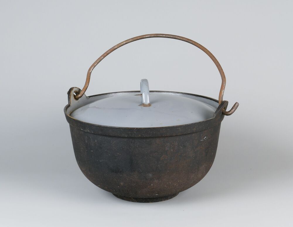 ketel van metaal met deksel en hengsel, circa 1900