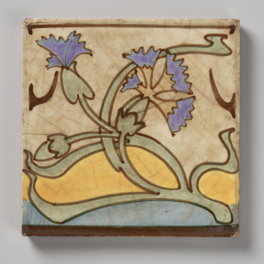 tegel van aardewerk met tinglazuur, voorstellende: h...