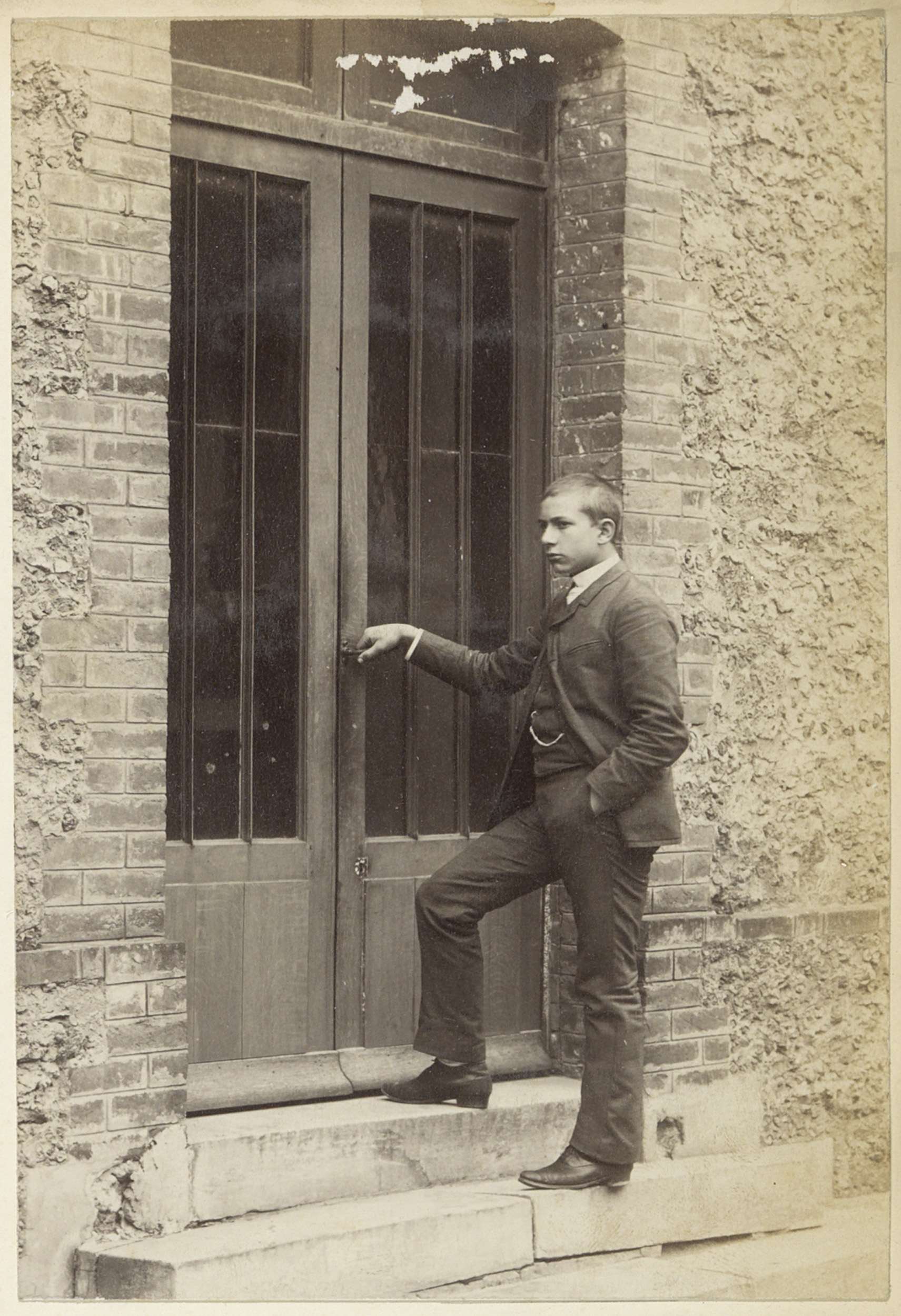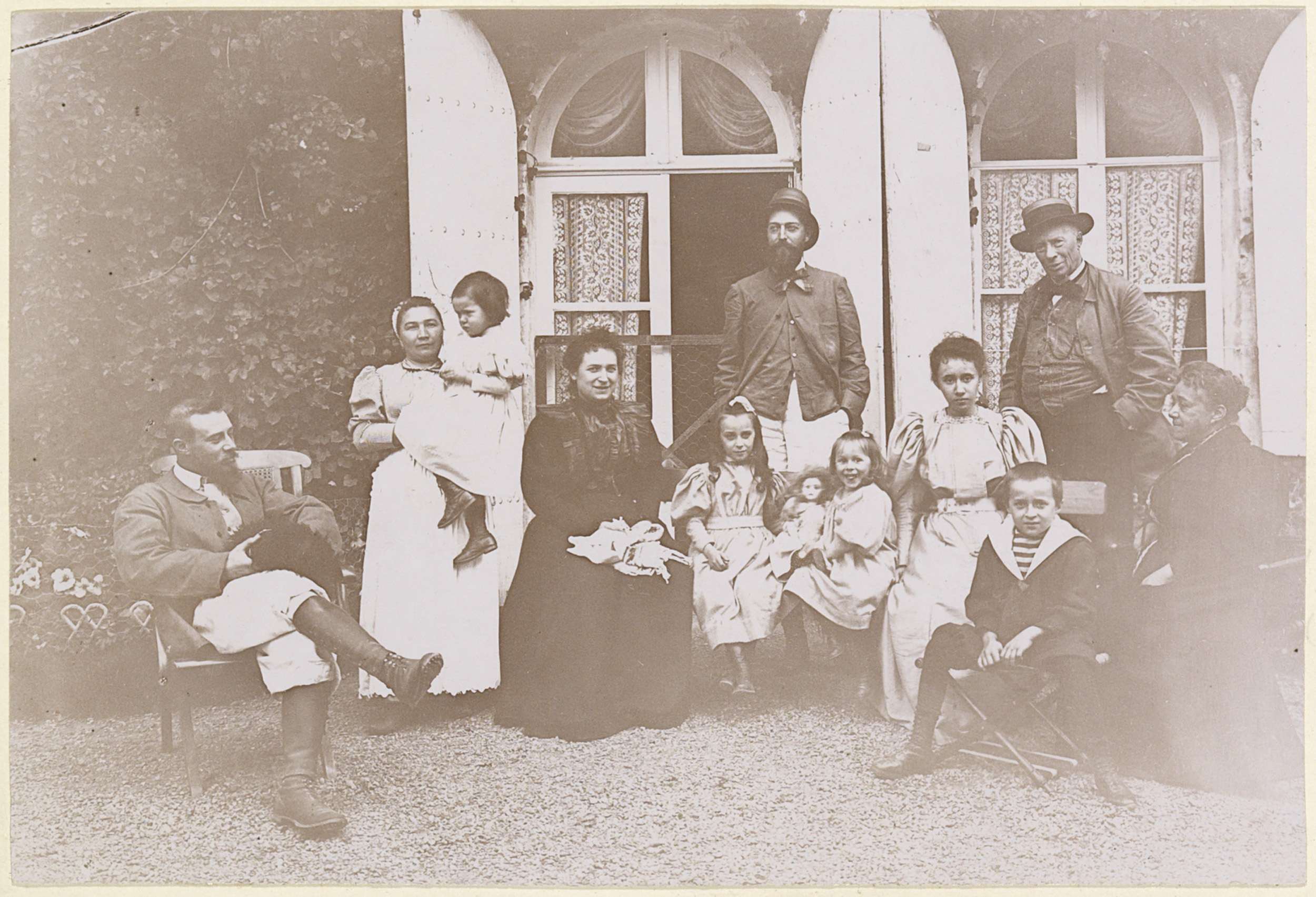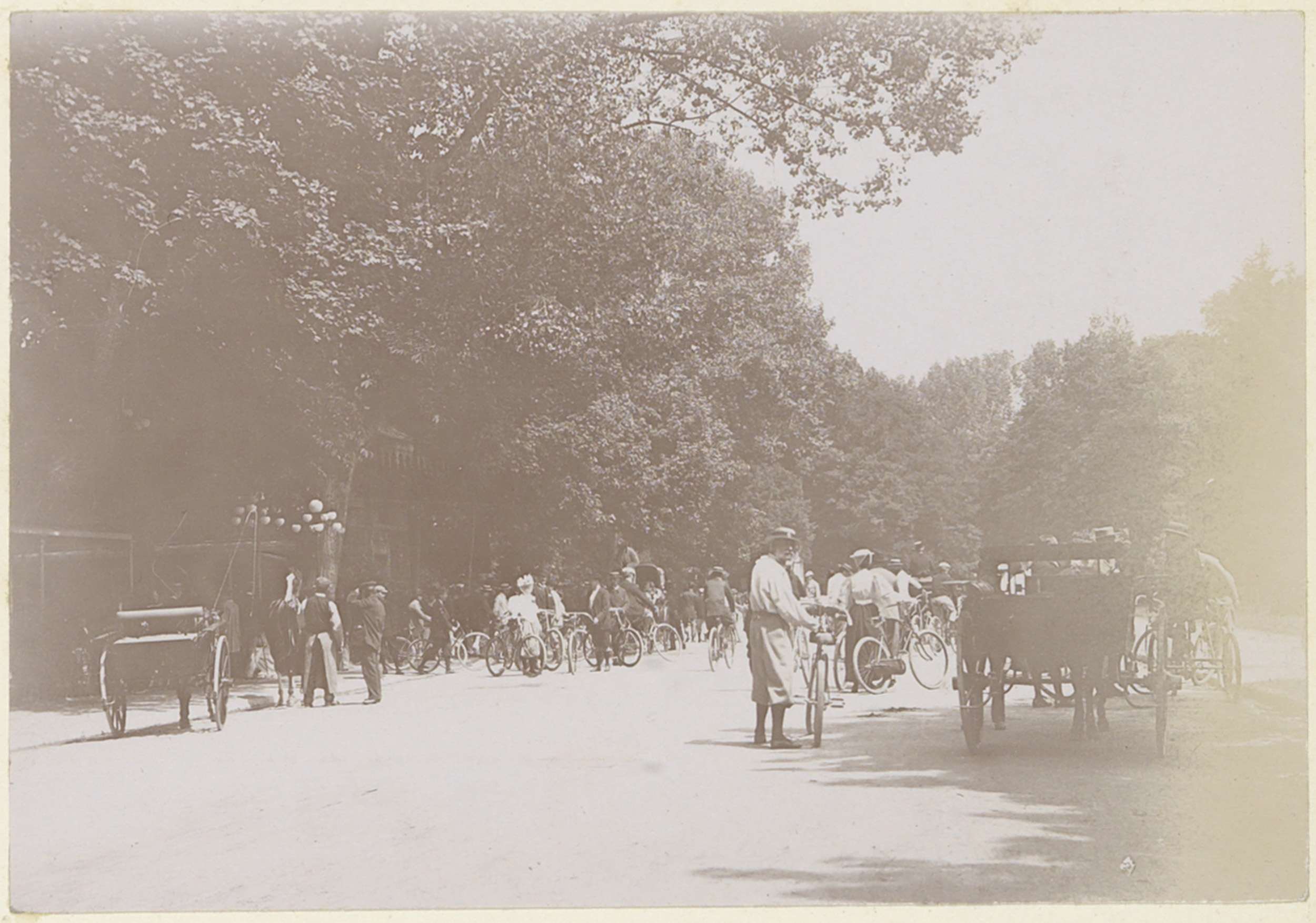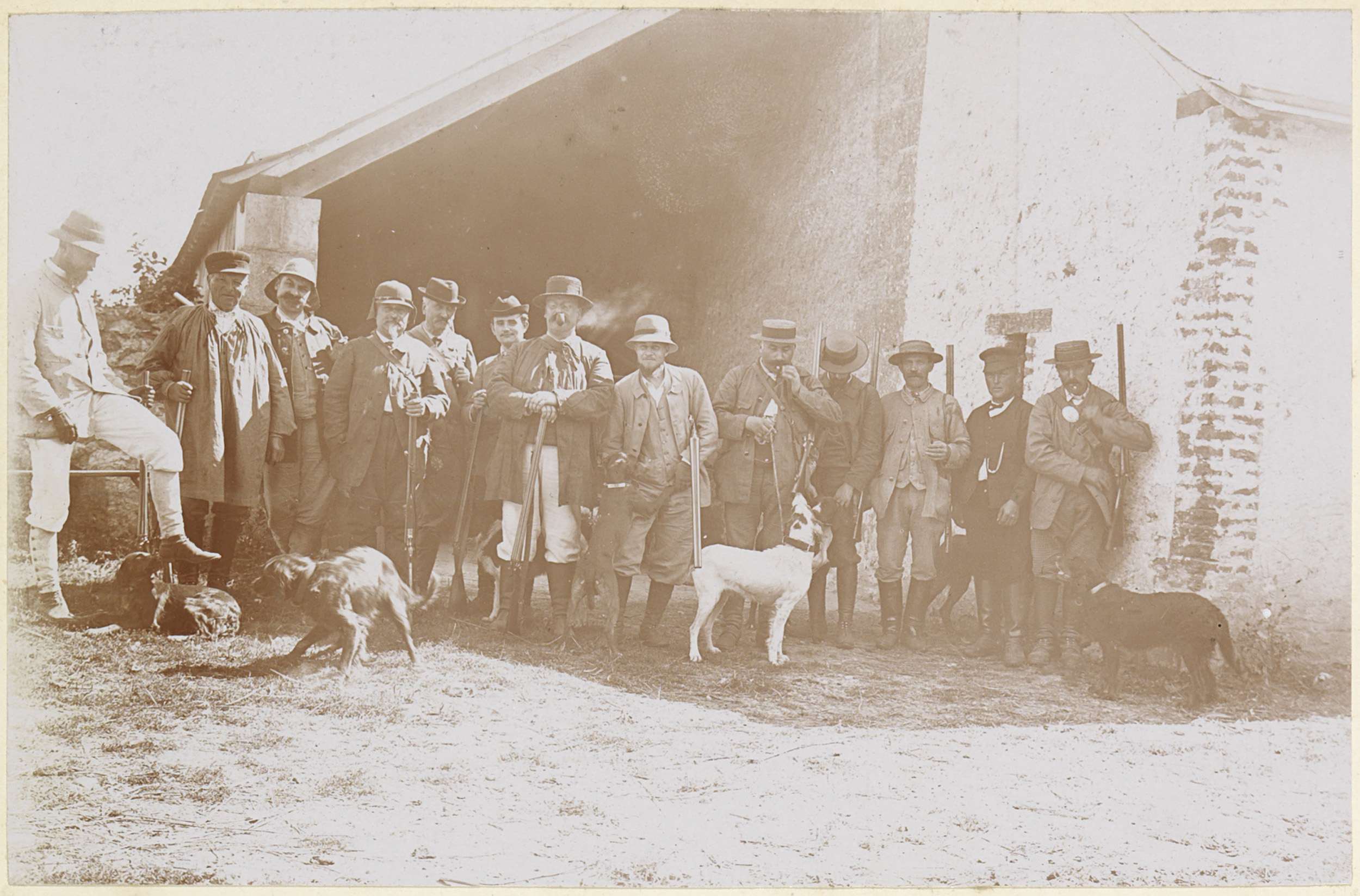 Mensen bij de ingang van een kasteel, mogelijk het K...