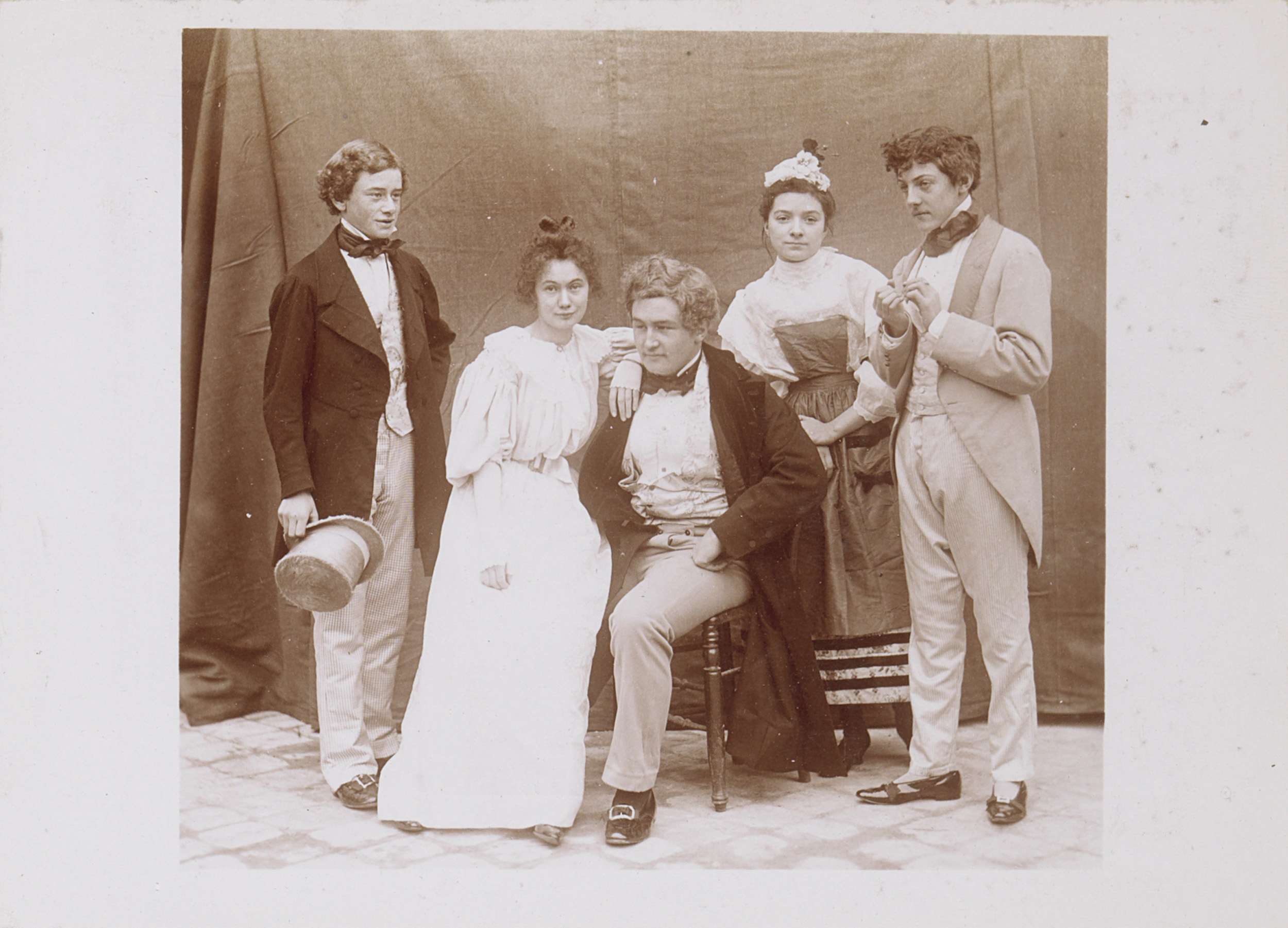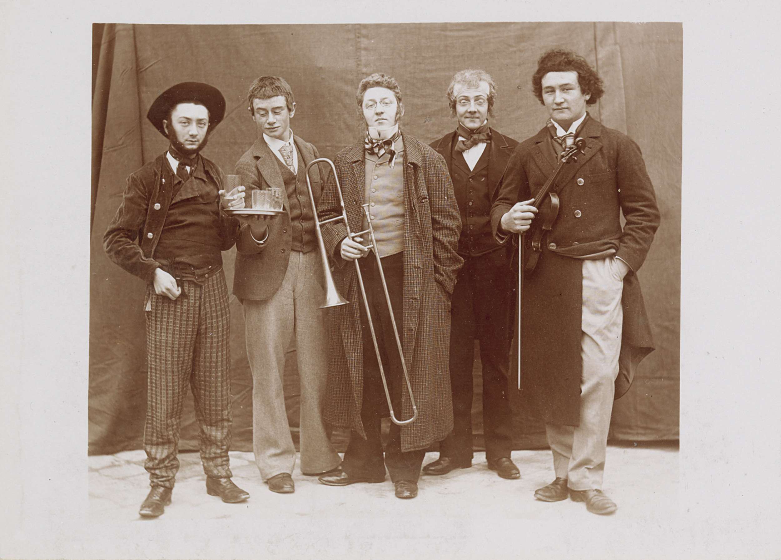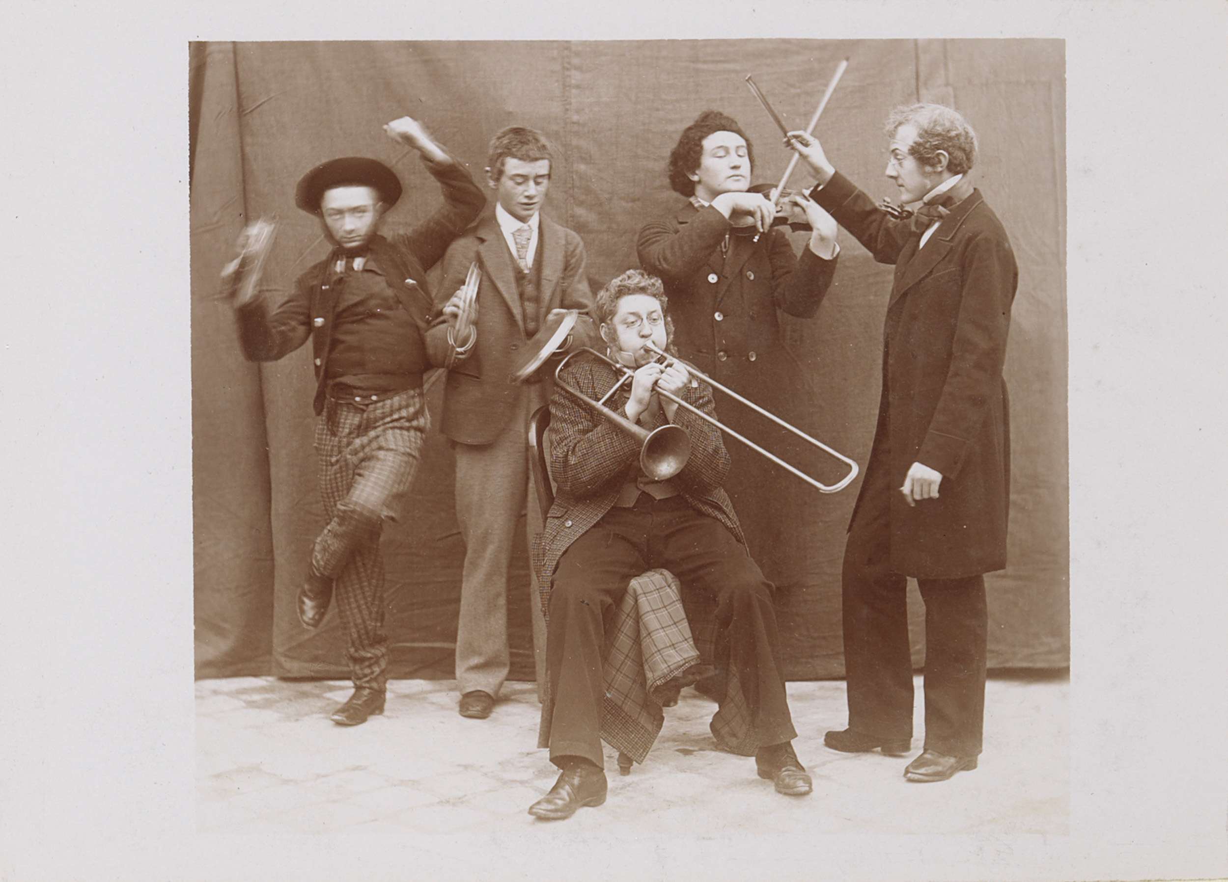 Twee muzikanten op een toneel, vermoedelijk Franse a...