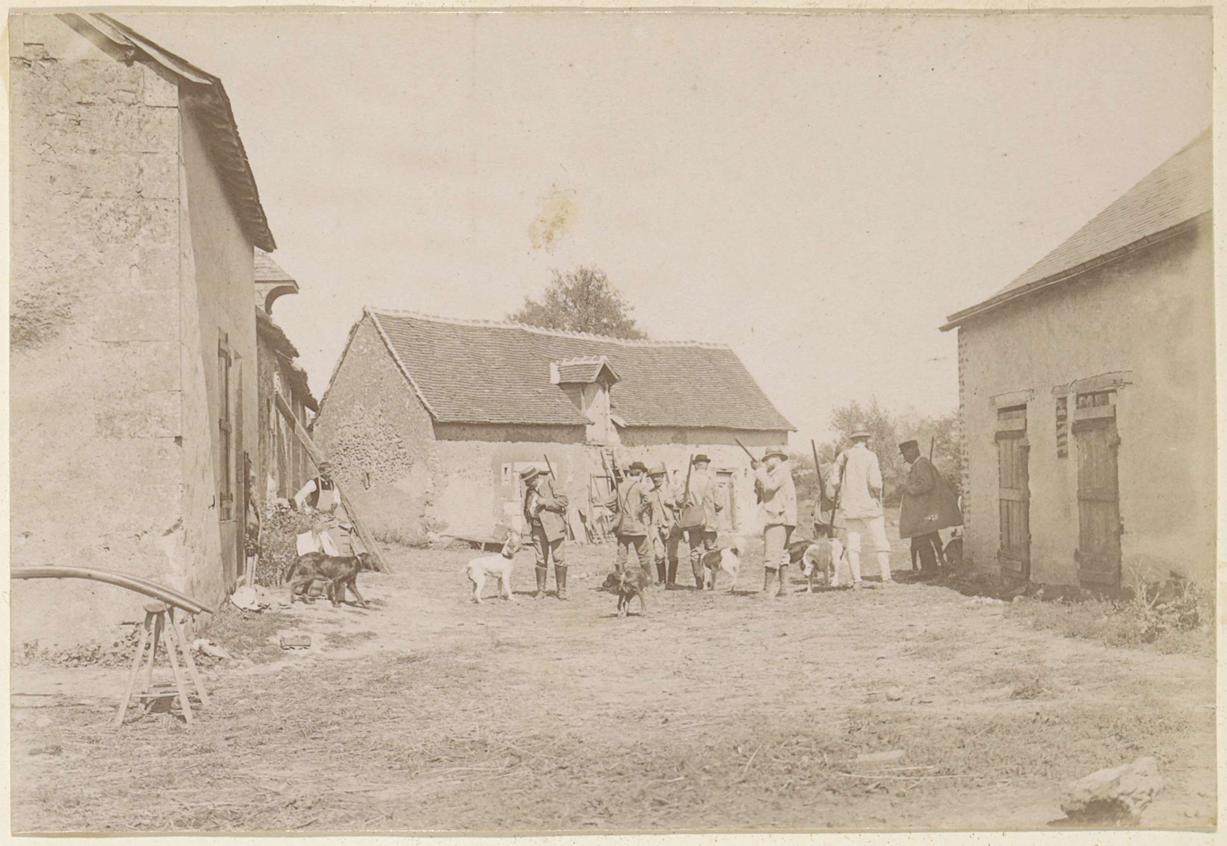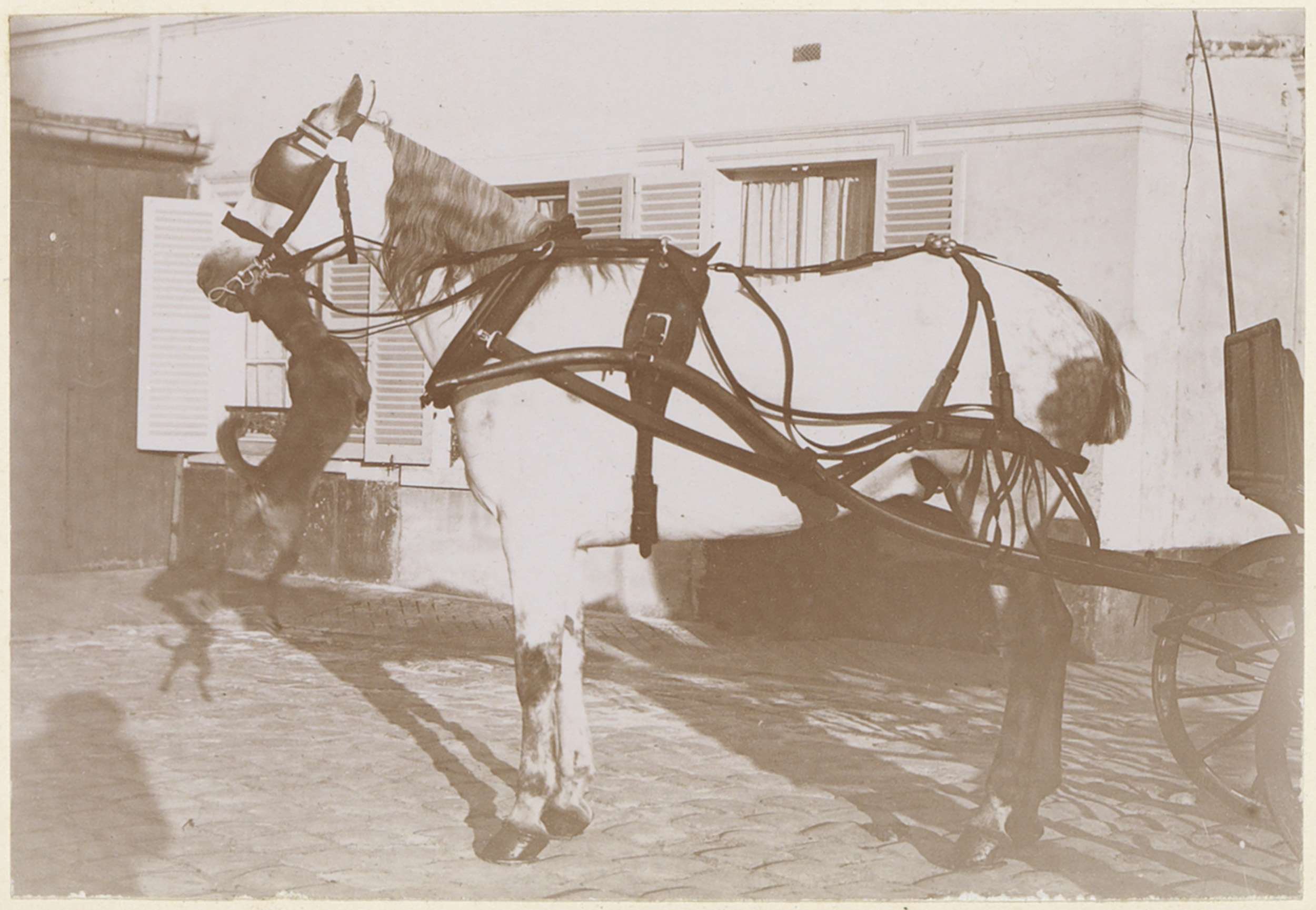 Rijtuig met paard op een binnenplaats in Frankrijk