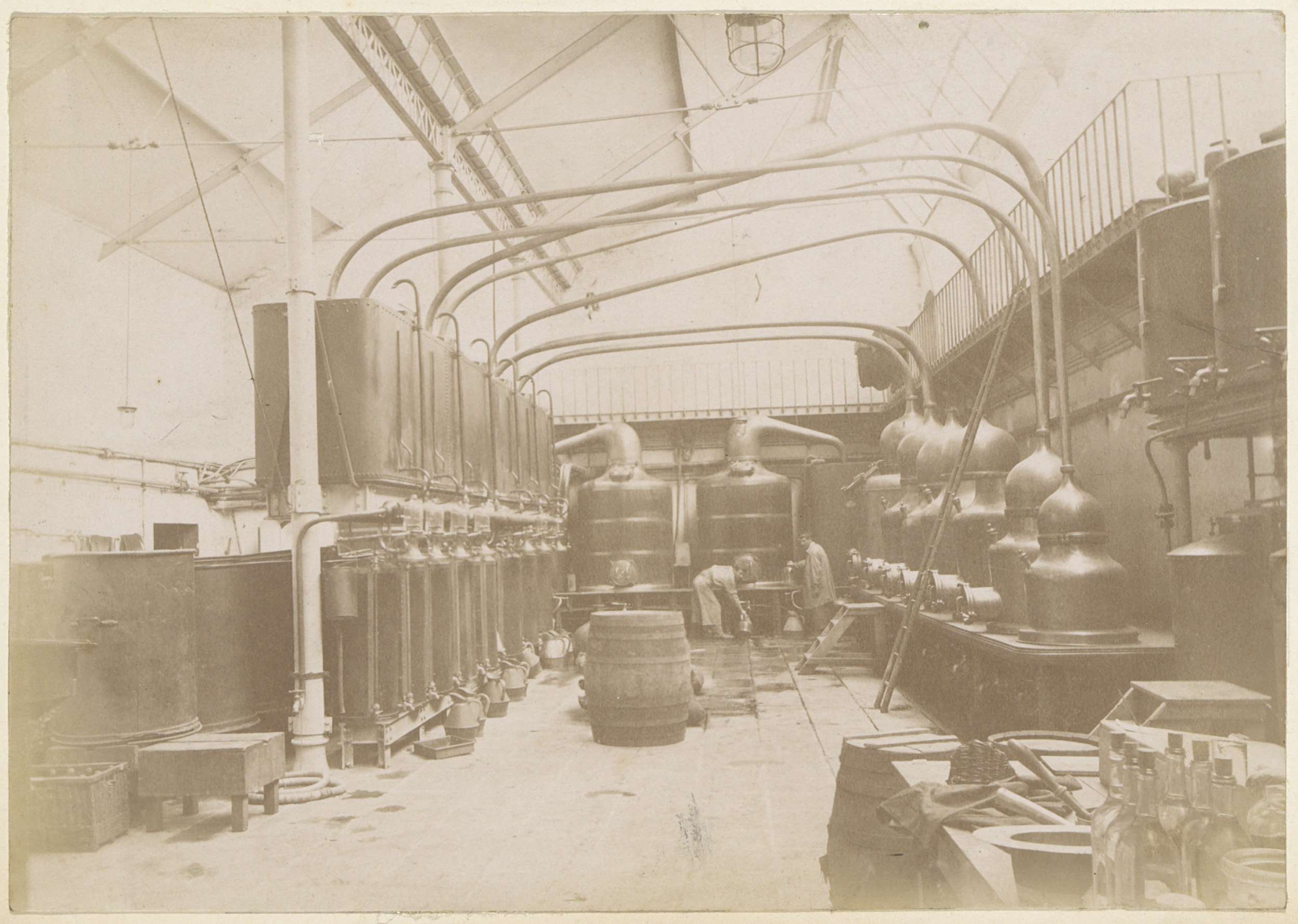 Interieur van (vermoedelijk) distilleerderij Delizy ...