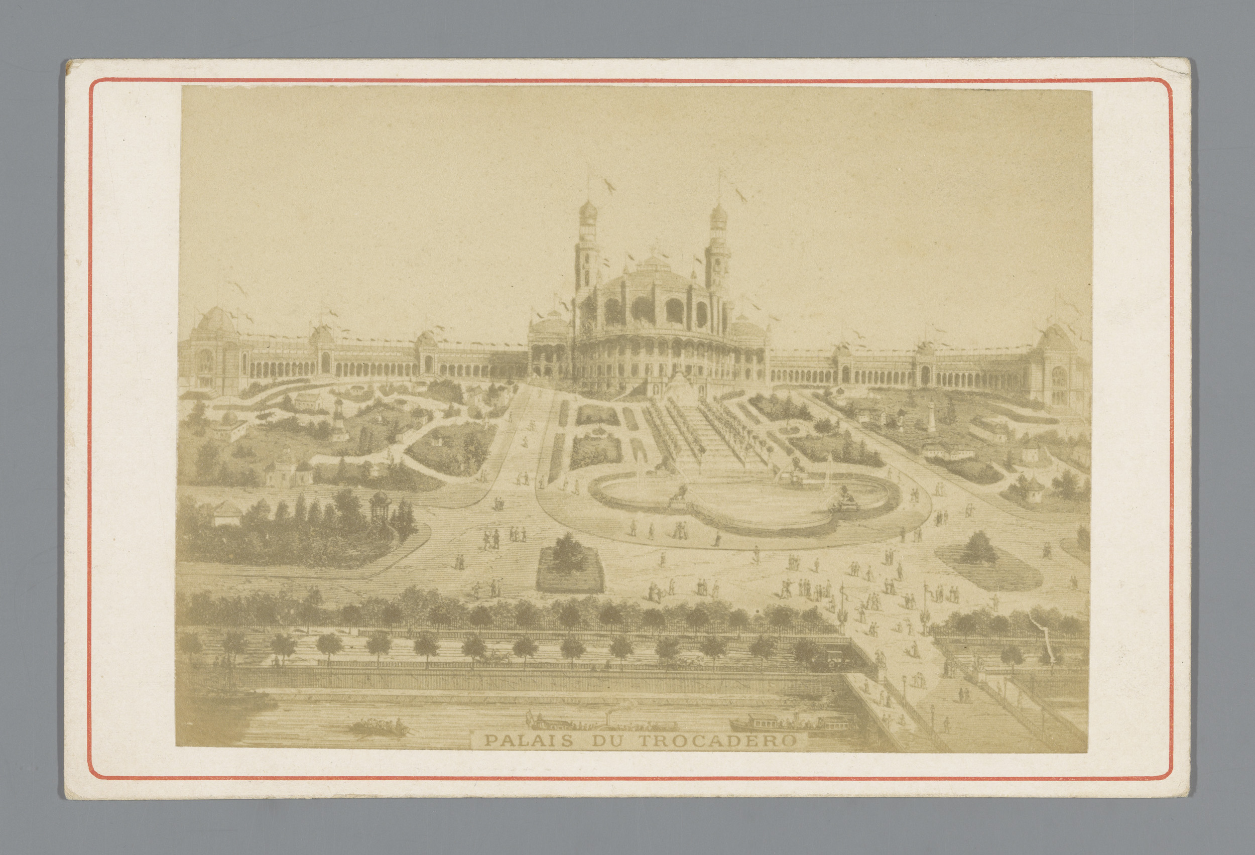 Gezicht op het Trocadero tijdens de Wereldtentoonste...