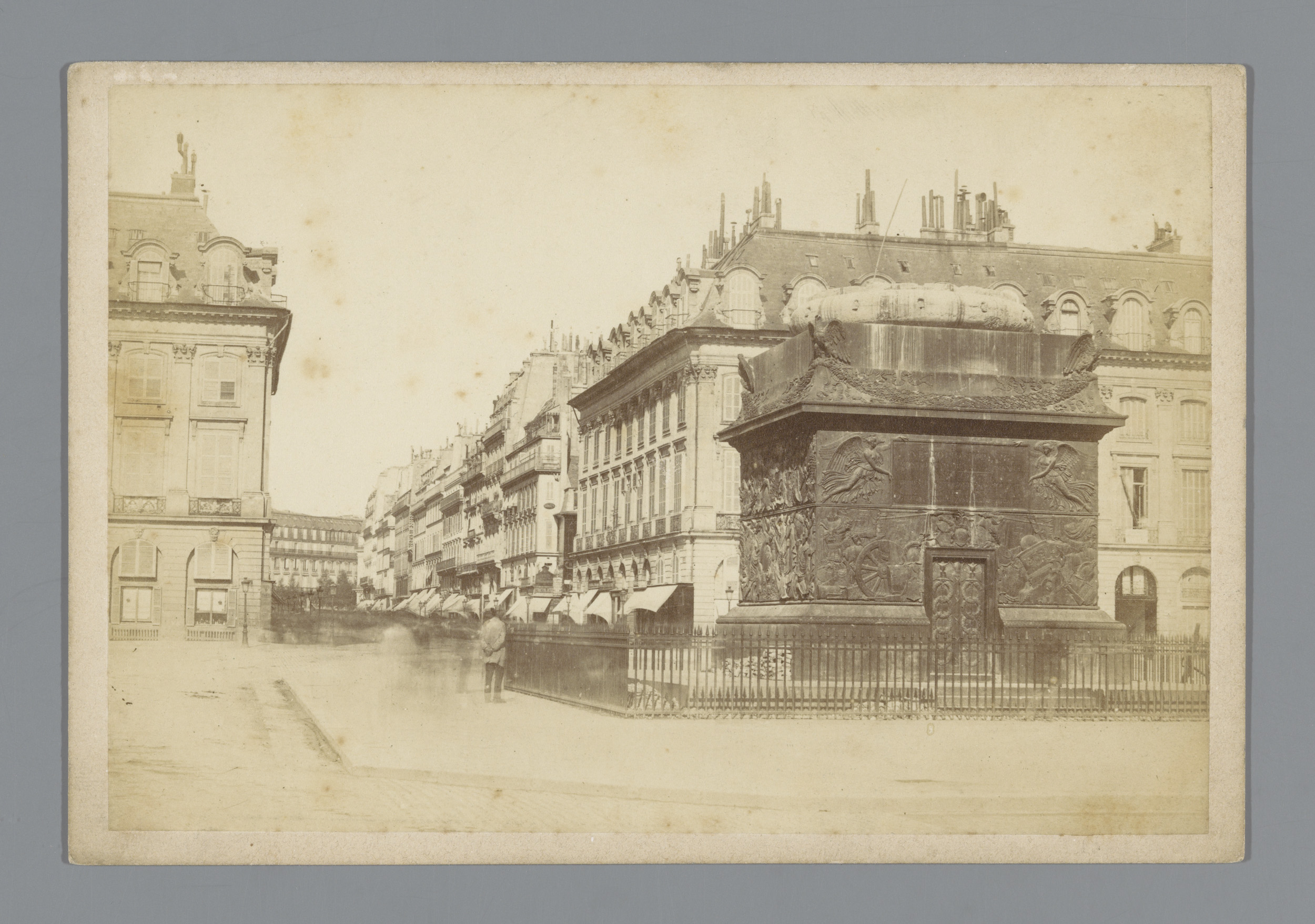 Gezicht op de lege sokkel van de Colonne Vendôme te ...