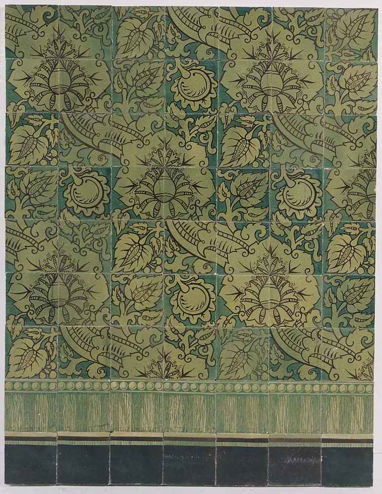 Tableau van 225 aardewerktegels met tinglazuur, met ...
