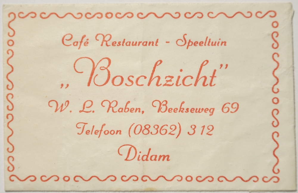 Suikerzakjes van papier van Café Restaurant 'Boschzi...