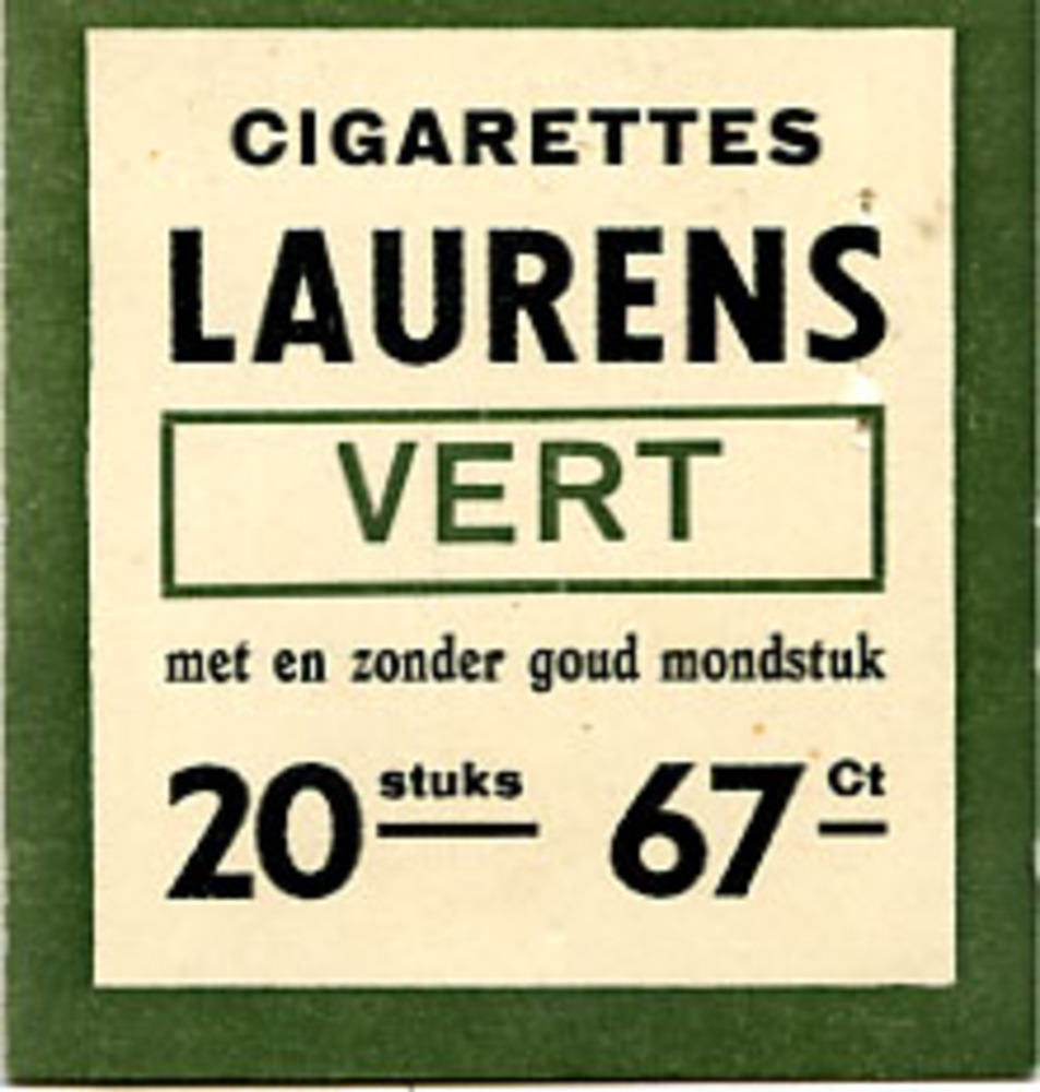 Prijskaartje 'Cigarettes Laurens VERT' karton, Laurens