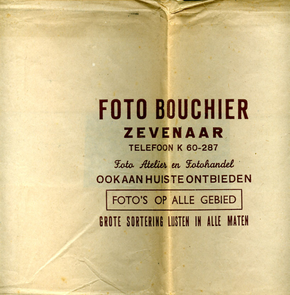 Wikkel van papier ' Foto Bouchier Zevenaar ' ca. 1940