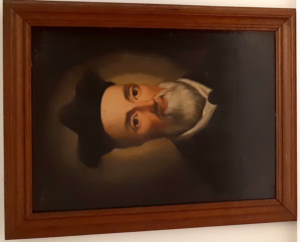 Portretschildering geschilderd op paneel van hout in...