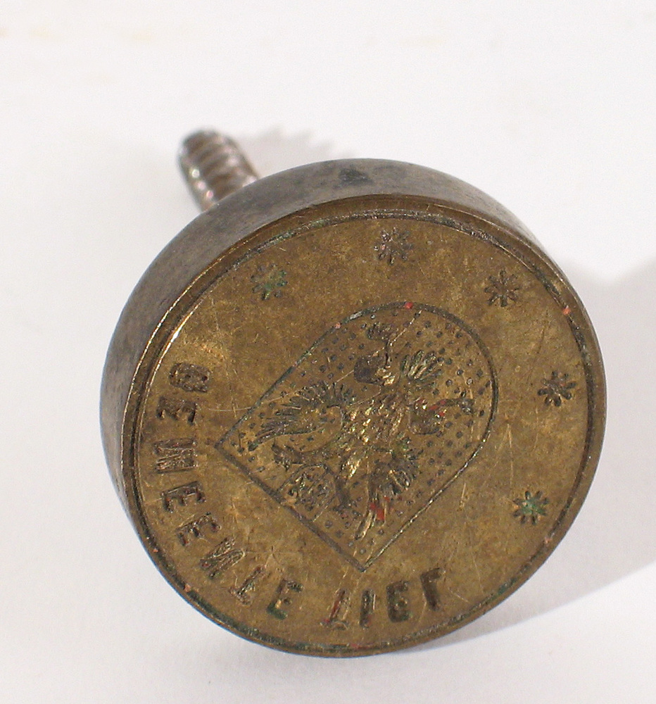 vergulde speld met stadswapen van Zaltbommel. Gedrag...