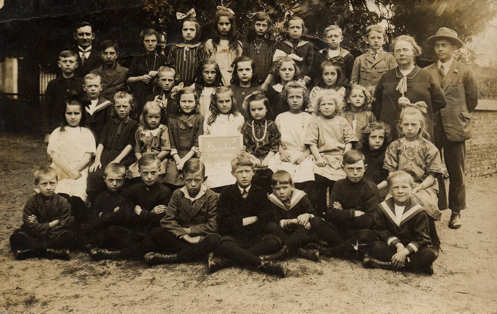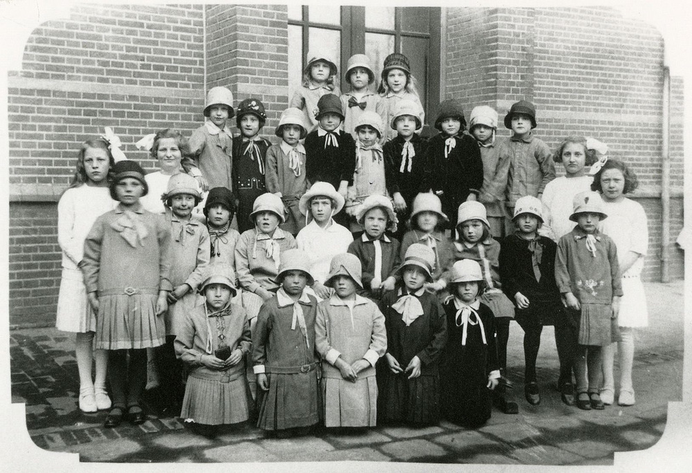 Schoolfoto: christelijke lagere school. Achterste ri...