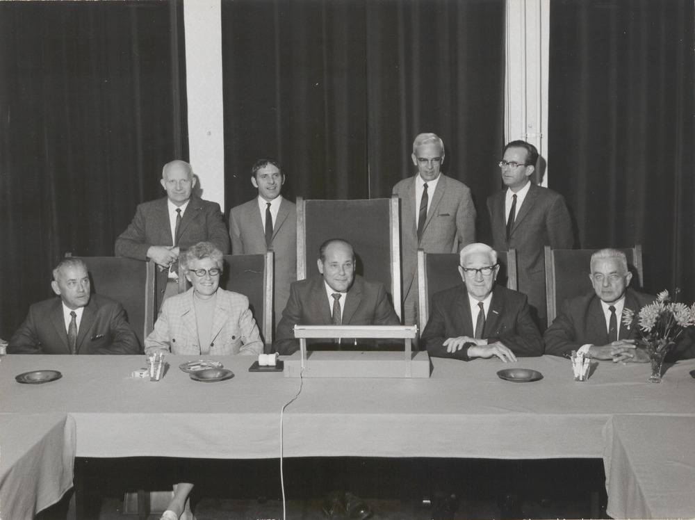Leden van de gemeenteraad en het feestcomité ter gel...