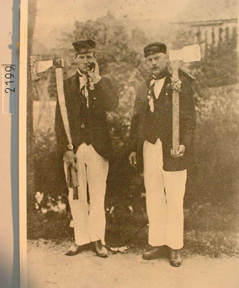 Huissense Gilden met twee oude bielemannnen L.Hent D...