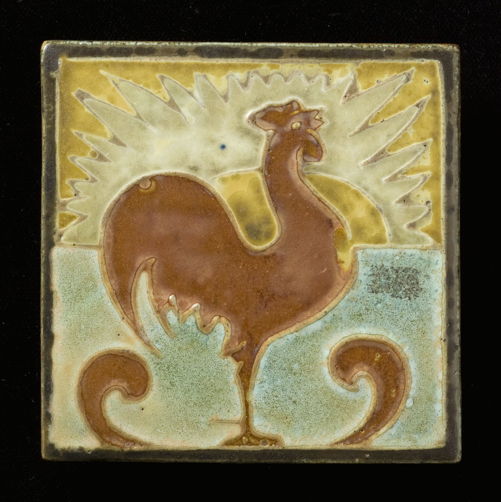 Tegel in cloisonné-techniek, met voorstelling: haan,...