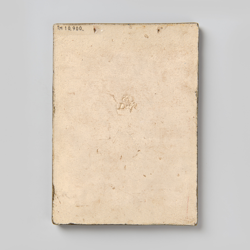 Tegel van keramiek met tinglazuur, voorstellende: de...