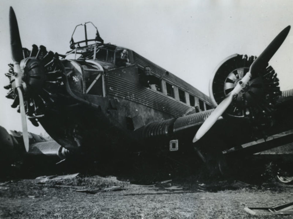 Foto neergeschoten Junkers-52 op 10 mei 1940 nabij B...