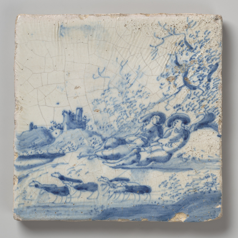 tegel van aardewerk met tinglazuur, voorstellende: h...