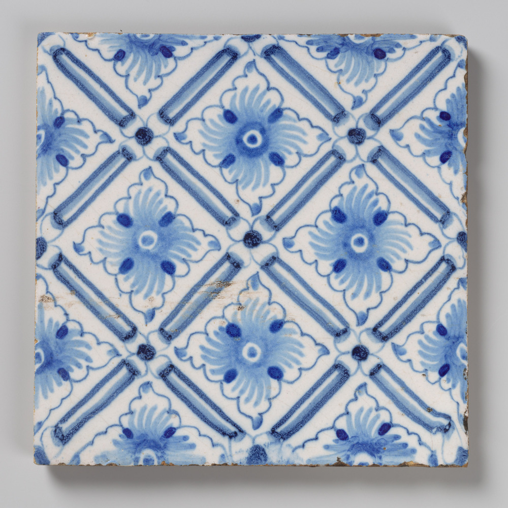 Tegel van keramiek met tinglazuur, voorstellende: or...