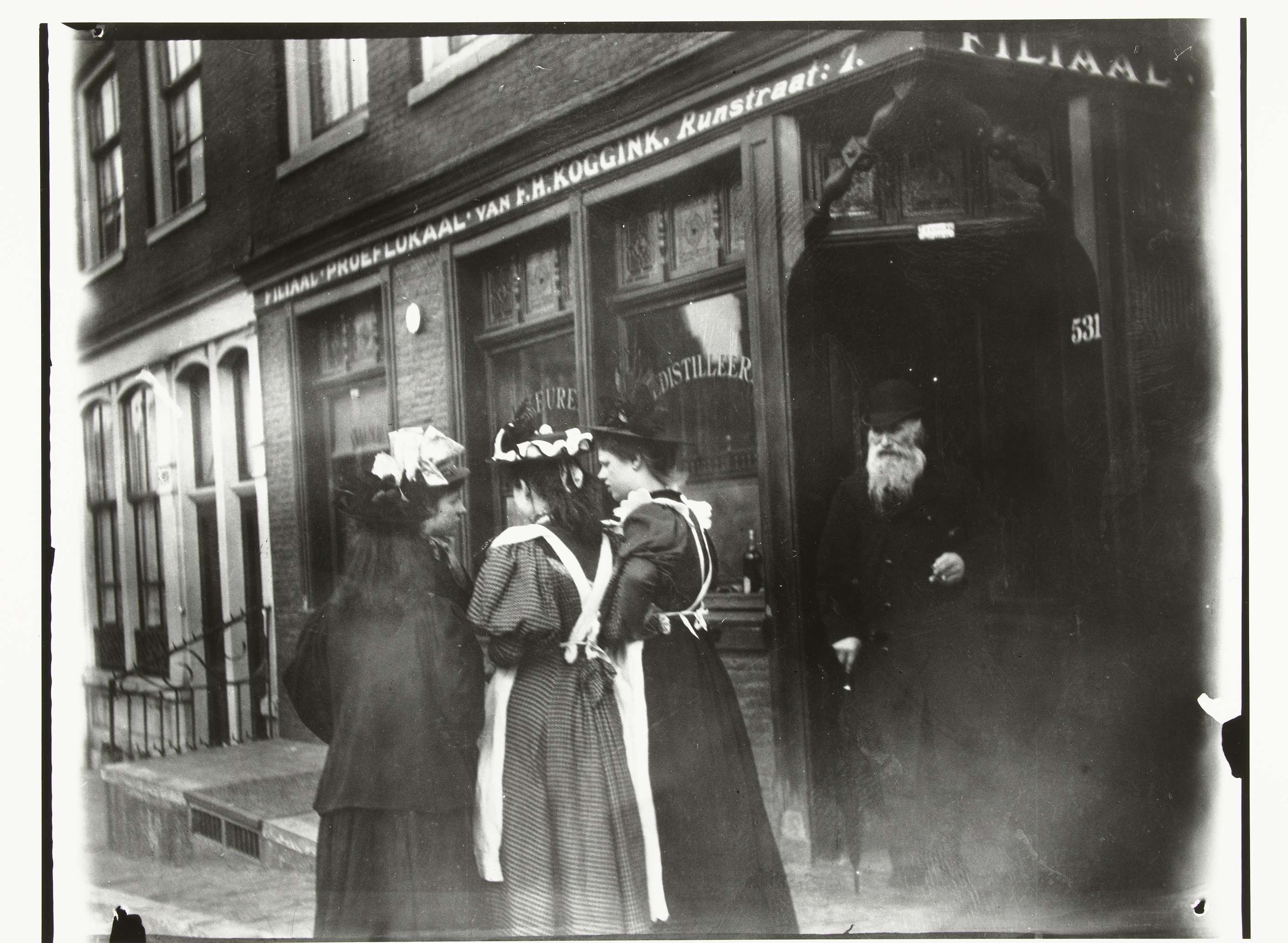 Kinderen spelend voor ingang Breitners atelier op Pr...