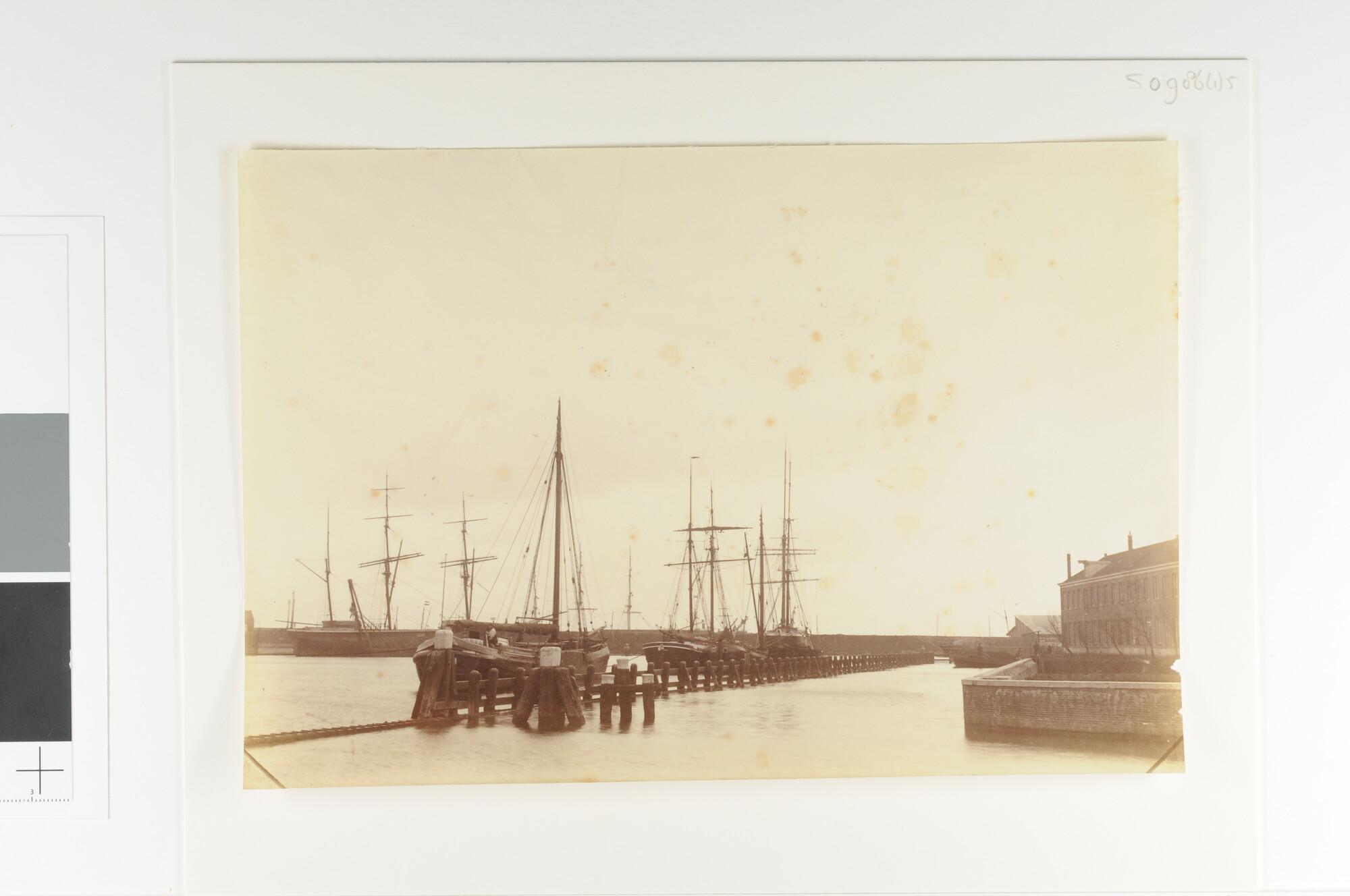 Gezicht op het Oosterdok en enkele afgemeerde zeilsc...